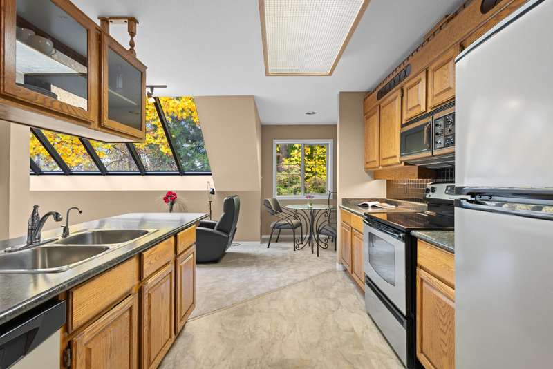 Is your beautiful furniture needing space to spare? This 1 bedroom & loft is a huge 1800 square feet located at the beautifully landscaped Cascade Village Burnaby. The suite has a loft that would be an awesome artists space, or a work from home office, with its own bathroom & a perfect midday morning latte deck. Two parking spots in the underground parking are steps from the access door to the suite. There is a wood burning fireplace, a family room off the kitchen and a huge primary bedroom. The complex has a lap pool, a theatre, a common party/gathering room. Designed for 2 people who appreciate their home with space & landscaping to spare…this is a superb lifestyle property. AS PER THE BYLAW This home has occupancy for 2 people only. OPEN HOUSE Saturday Sept 13, 1-3pm.