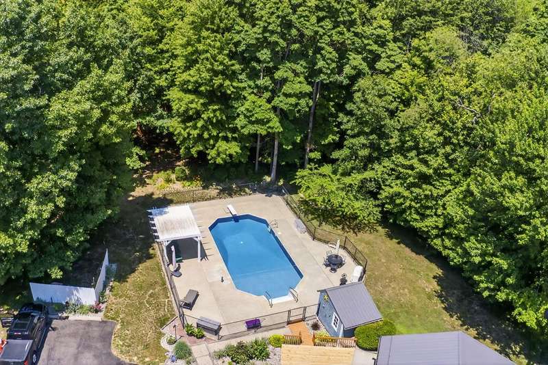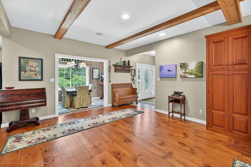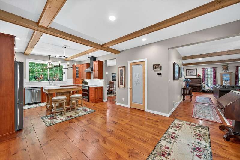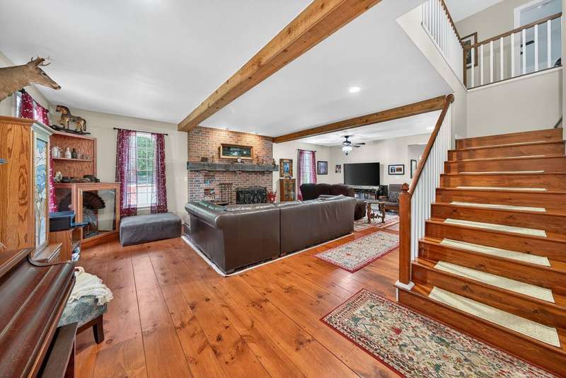 Nestled at the end of a 1,440?ft paved driveway winding through nearly 90 acres wooded trails, farmland, and a private pond, from the moment ythis fully restored Saltbox-style home offers 4 bedrooms, 4 full bathrooms, and over 4,000 square feet of thoughtfully designed living space. Every inch has been updated from the wide-plank flooring to the custom kitchen cabinetry ? blending historic charm with modern comfort.The main level features a spacious living room with a massive wood-burning fireplace, exposed wood beams, and a guest bedroom tucked privately away. Upstairs includes an expansive primary suite and two large bedrooms. The walk-out lower level offers flexible space for family or entertaining, with a wood stove and extensive storage. The lower level offers flexible space for family or entertaining, with a wood stove and extensive storage. A mudroom/laundry and attached garage add convenience to the smart layout. Outside, enjoy an in-ground pool, an insulated pole barn, and open views of your private acreage. The land includes trails, a pond, and some tillable or leasable farmland ideal for recreation, hobby farming, or simply enjoying nature.