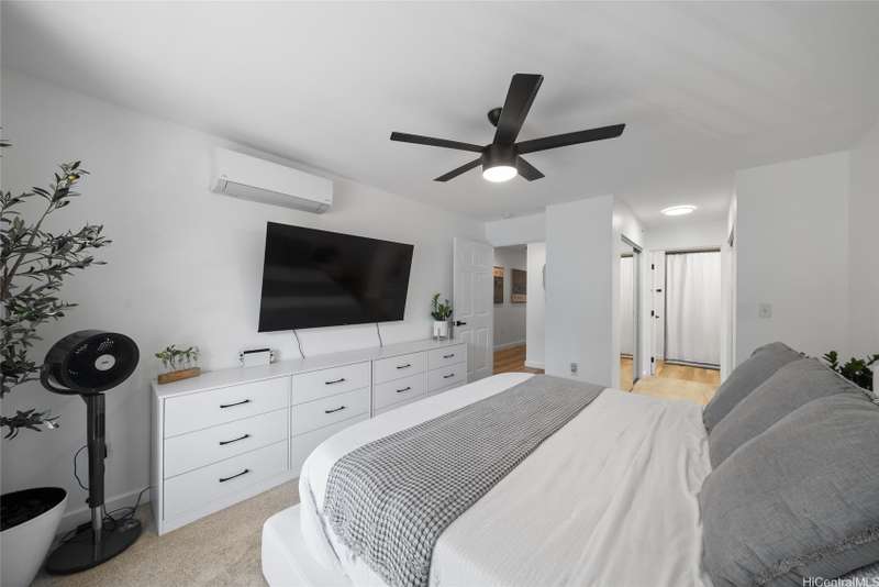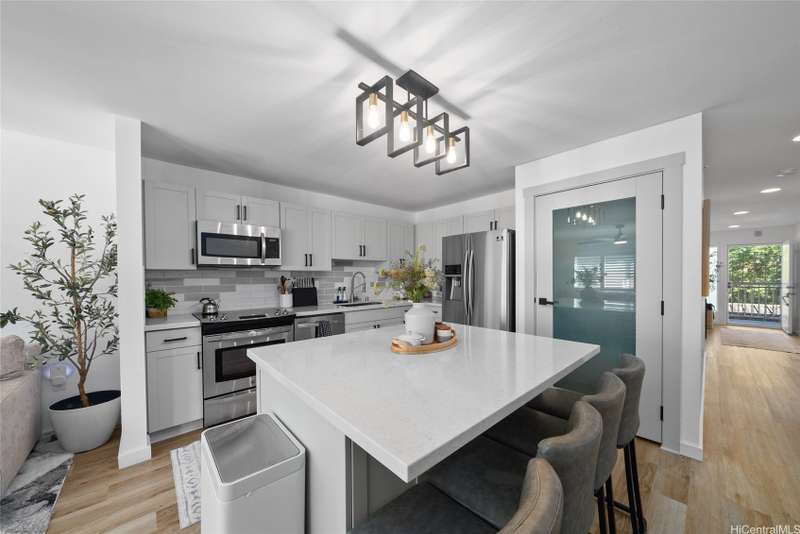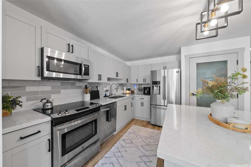 **MOTIVATED SELLER WILL PAY FOR 12 MONTHS WORTH OF MAINTENANCE FEES** RECENT PRICE IMPROVEMENT! 3-bed, 2-bath unit in Waikalani Woodlands! Located 25 minutes from the North Shore/Haleiwa/and Waialua, 5-10 minutes from Scholfield & Wheeler AFB. Designed for convenience & comfort, this home includes a full washer/dryer in the unit, split air-conditioning, all-new flooring, new recessed LED light fixtures, 2 year old water heater, & ceiling fans in all rooms. All bathroom and kitchen countertops have been replaced with quartz. The layout is well suited for a variety of living arrangements, including roommates, multi-generational living, or rental income potential. The 2 bedrooms & large full bathroom is just after an entry way, keeping the primary bedroom and en-suite bathroom at the other end of the unit. The living area provides comfort sharing the space with the large "open" kitchen. 2 parking spaces available (covered and uncovered), elevator & staircases near the parking spaces. Other neighborhood highlights include the complex being situated at the end of Waikalani Drive which results in low traffic & a quiet environment near the Melemanu gate.