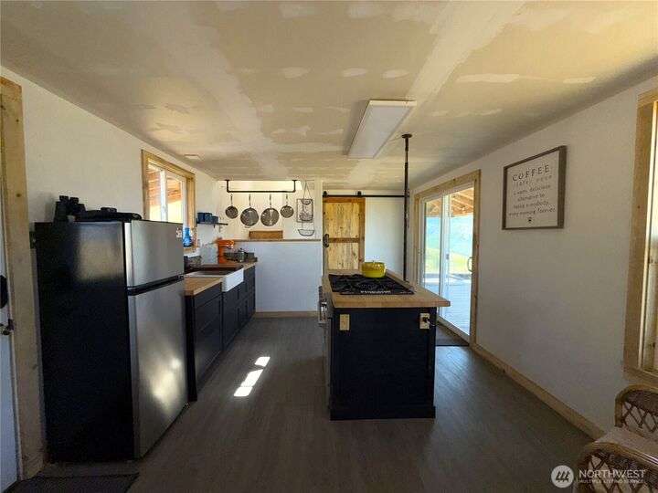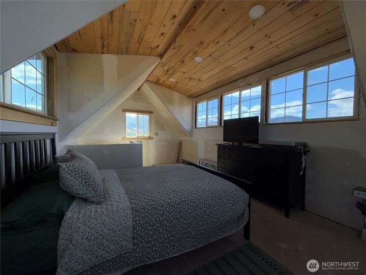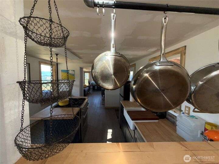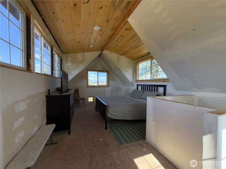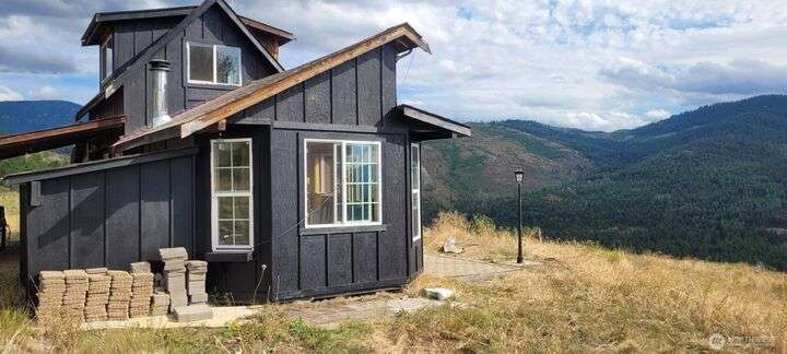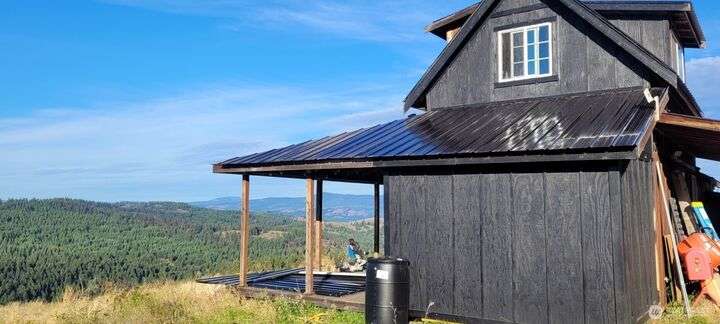 Absolutely stunning views of the Kettle Crest and surrounding mountains from this cute 1 and a half story off-grid cabin. The living room features vaulted tongue and groove ceiling with sheet rocked walls throughout. The well thought out kitchen has plenty of cabinet space, farm style sink and center island with a high end Italian made gas range. There’s an enclosed water tank (well hasn't been drilled) but the plumbing has not been hooked up yet. The cabin has been set up with an on-demand hot water heater, shower and composting toilet. Light and bright inside plus a covered deck to sit and enjoy the views. Extremely private.
