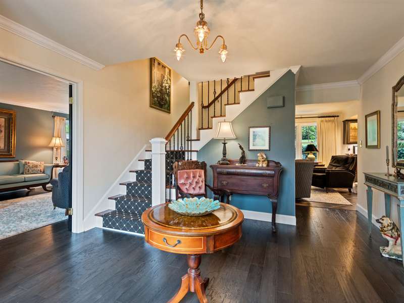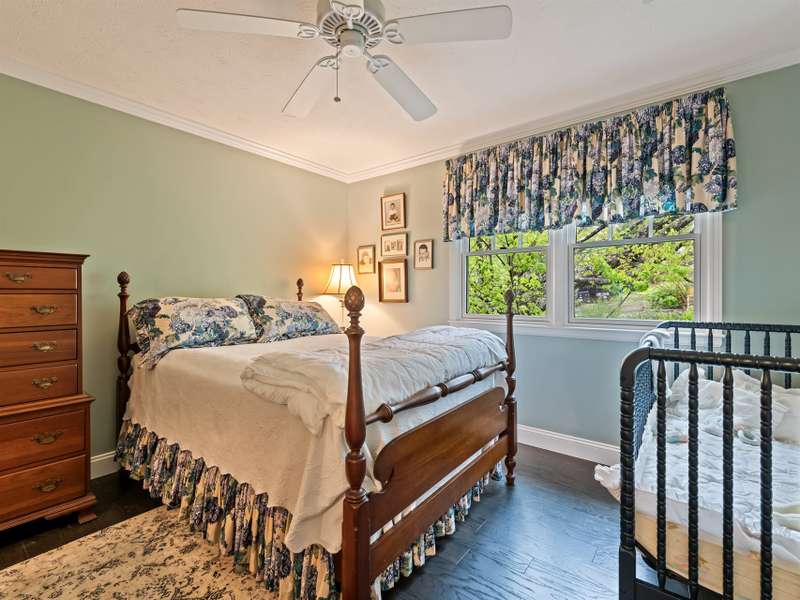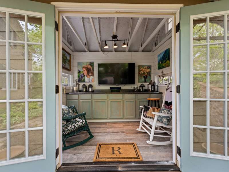 Charming home exploding with character and personality?this is one you have to see to believe! Meticulously maintained with luxury updates throughout, including 2024 engineered hardwood floors, a 2018 roof, new Pella windows and door in 2019, and Kingston brass bathroom fixtures. Storage galore and stunning custom built-ins with recessed lighting throughout. Bonus room upstairs used as a bedroom. The basement offers a spacious entertainment area, art room, workshop/hobby space, and more! Landscaping is straight out of a storybook, complete with twinkling lights in the tree. Enjoy mountain views from the idyllic front porch or relax in the back courtyard while watching a game from the entertainment shed. The primary bedroom boasts a private balcony for your morning coffee or evening unwind. Located less than 5 minutes from Lake Junaluska, grocery stores, and downtown Waynesville. A home with space, beauty, and function for the whole family.