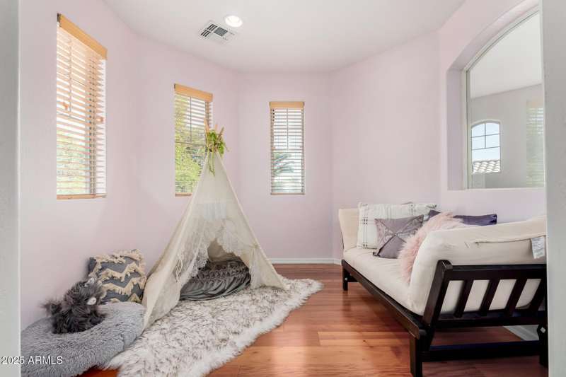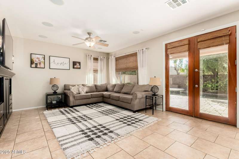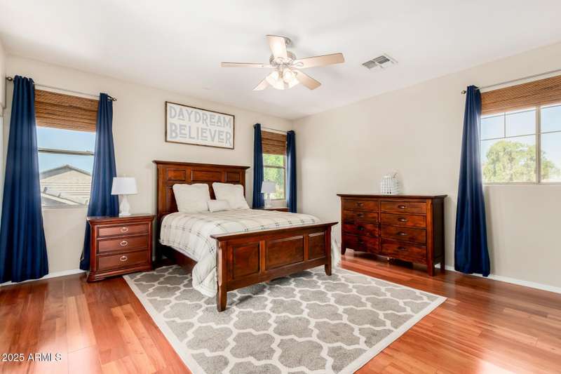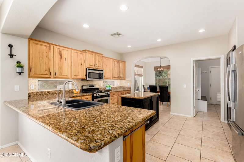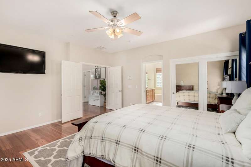 Welcome home to one of Carino Estates' most desirable properties, perfectly located within the award-winning Hamilton High School district and priced to sell. Step inside and you'll immediately notice the thoughtful upgrades and custom touches throughout. This home features handcrafted built-ins, hardwood flooring, and designer finishes that give it a warm yet elevated feel. The kitchen is the heart of the home, complete with a wine and beverage bar, tiled backsplash, refaced island, custom pantry doors, and dimmable lighting to set the mood. The adjoining dining area includes built-in bench seating, perfect for casual family meals or entertaining guests. The living spaces offer incredible flexibility with a main-level bedroom and full bath, plus an enclosed bonus room with soundproof- ing, ideal for a home theater, office, or teen retreat. Upstairs you'll find a spacious loft and customized bedroom closets, offering functionality and storage that are hard to come by. The primary suite is a private escape featuring a second master closet and a privacy door into the bath for a spa-like feel. Step outside and enjoy the Arizona lifestyle at its best with a resort-style backyard oasis featuring 1,200 square feet of travertine pavers, a pebble-finish pool, and a built-in BBQ and bar area under a covered patio, perfect for gatherings or quiet evenings under the stars. You'll also love the convenience of the 3-car garage, offering plenty of space for vehicles, storage, or a home workshop. Every detail of this home has been lovingly curated to maximize comfort, storage, and livability. Carino Estates offers lush greenbelts, walking paths, a community lake, and playground, all just minutes from Intel, top-rated schools, Loop 202, 101 and I-10, Downtown Chandler, shopping, and dining. This one-of-a-kind home blends craftsmanship, comfort, and convenience and it's ready for its next chapter. Don't miss this rare opportunity!