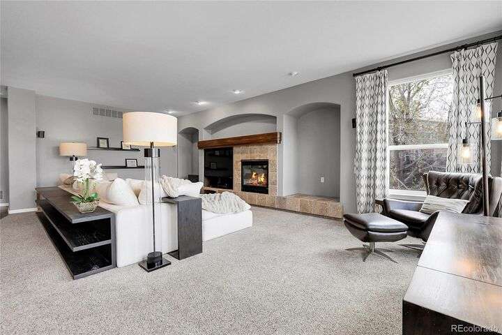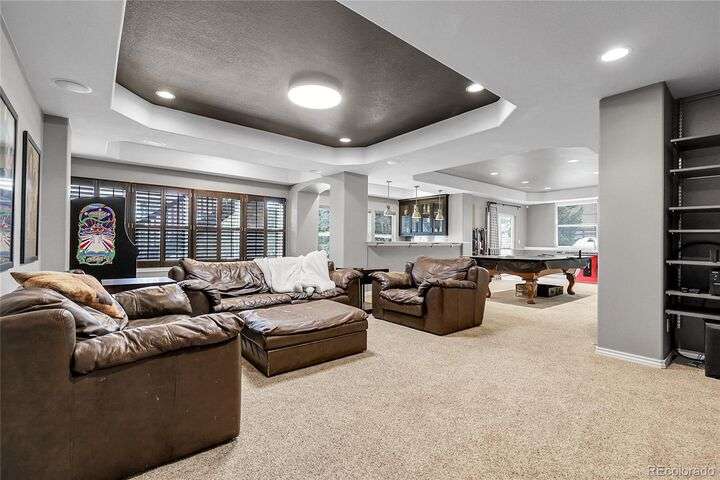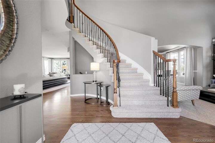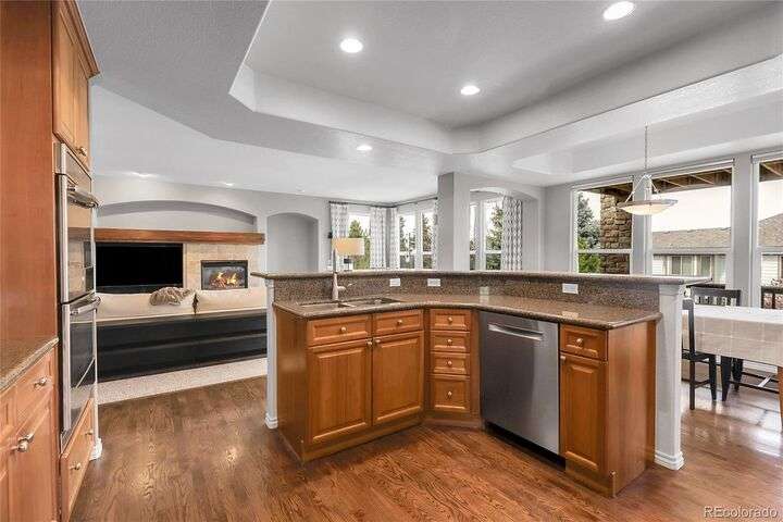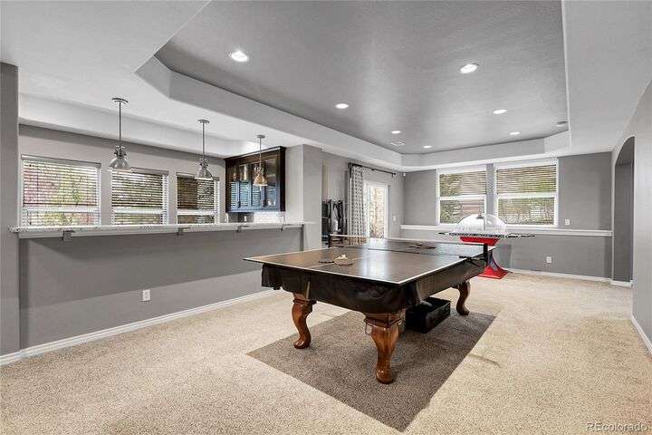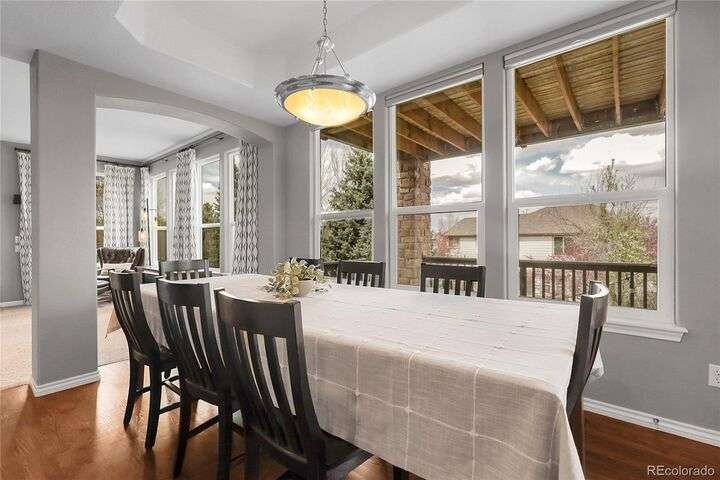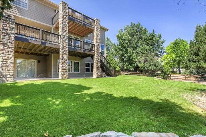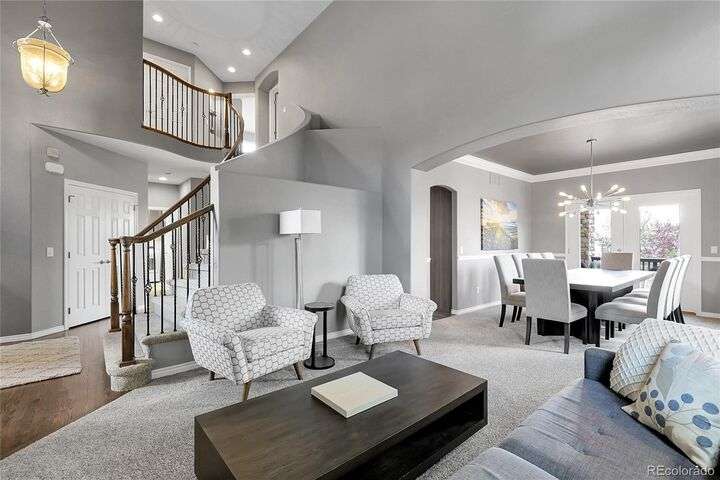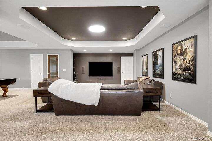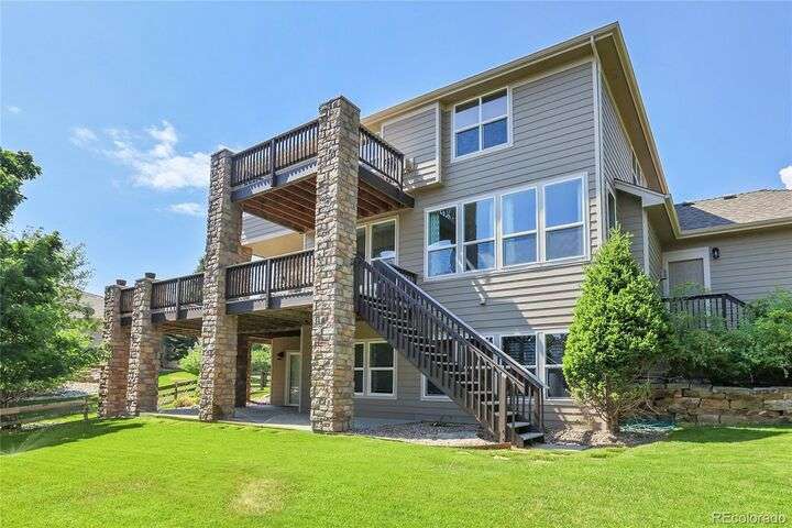 Stunning home in the highly sought-after Soaring Eagle Estates—one of the few semi-custom homes in this exceptional area. Enter through the impressive two-story foyer featuring gorgeous hardwood flooring. A generously sized office awaits you, complete with double doors and numerous windows that invite ample natural light. The formal living and dining rooms enhance the inviting atmosphere, perfect for entertaining guests or enjoying family meals. The kitchen seamlessly opens to the family room and includes a spacious dining nook, accommodating a table for eight, with convenient access to the private and expansive wrap-around upper deck. The family room, adorned with a wall of windows, high ceilings, and a cozy gas fireplace, serves as an ideal gathering place. Completing this level are a powder bath and a mudroom with laundry facilities. Upstairs, discover the luxurious primary suite, featuring a sitting room and private deck offering incredible views. The primary bath, spacious and airy, boasts a closet that will impress. Three additional bedrooms, each with direct access to a bathroom, provide comfort and convenience. The basement rounds out this amazing home and will not disappoint, featuring over 1,600 sq. ft. of additional living space. It includes a 5th bedroom, a full bathroom, a media room, game room, and a wet bar complete with granite counters, stainless-steel dishwasher, bar fridge, ice maker, and microwave with ample cabinetry and bar seating. Natural sunlight floods in through the numerous windows, and the space walks out to a lower covered deck, creating a generous area for play or relaxation. Enjoy the three outdoor deck/patio areas and a full backyard equipped with a built-in firepit and plenty of room for activities. The outdoor living experience is just as functional and spacious as the interior. Finally, don’t miss the hard-to-find attached four-car garage, offering all the space you need for toys, cars, and storage.