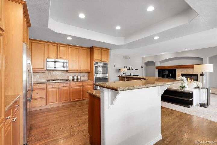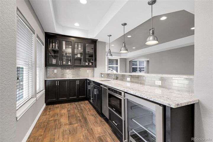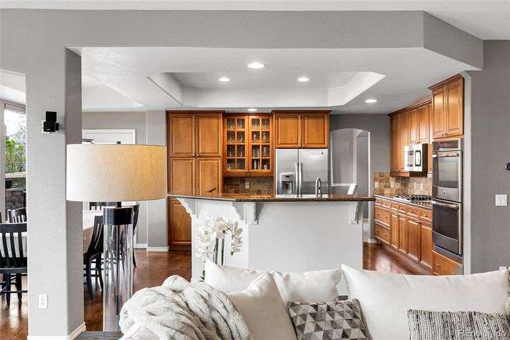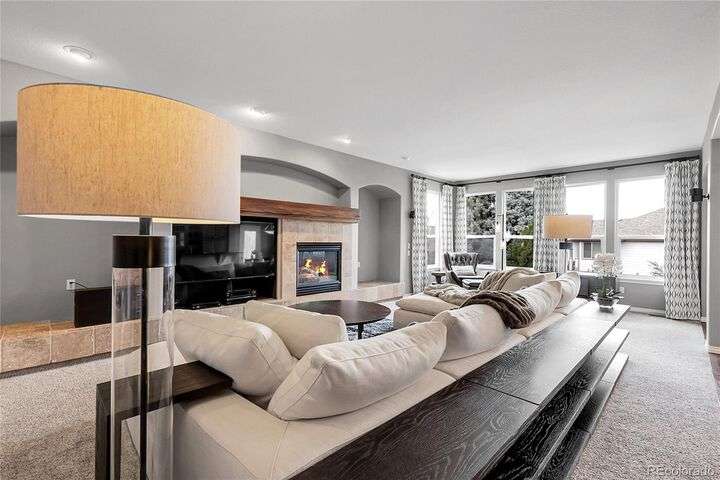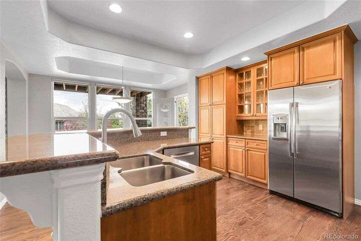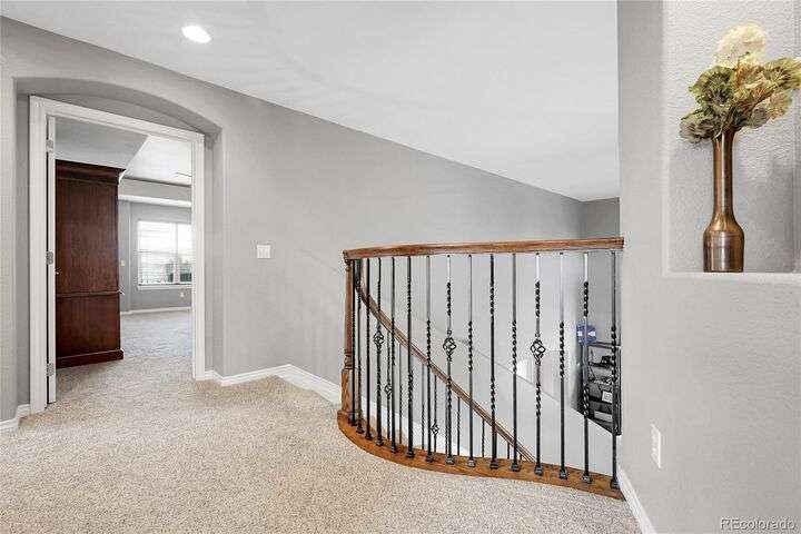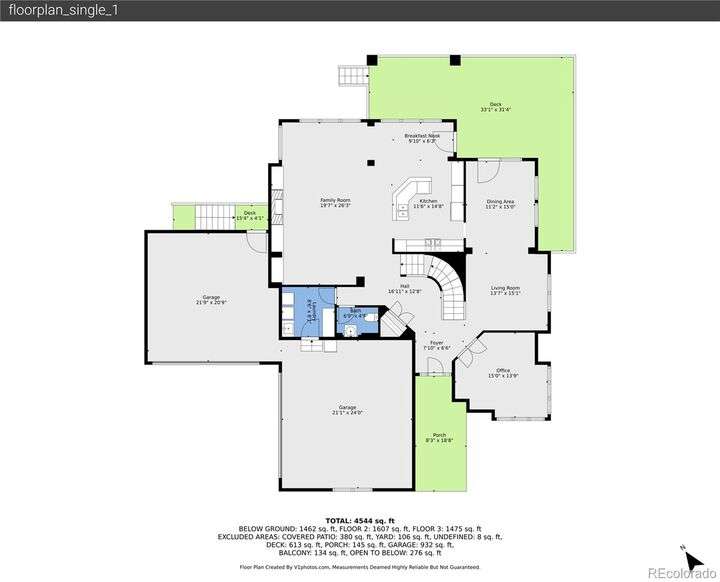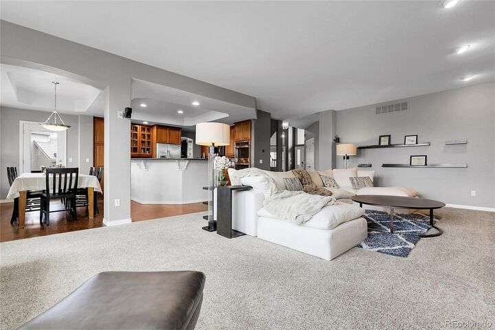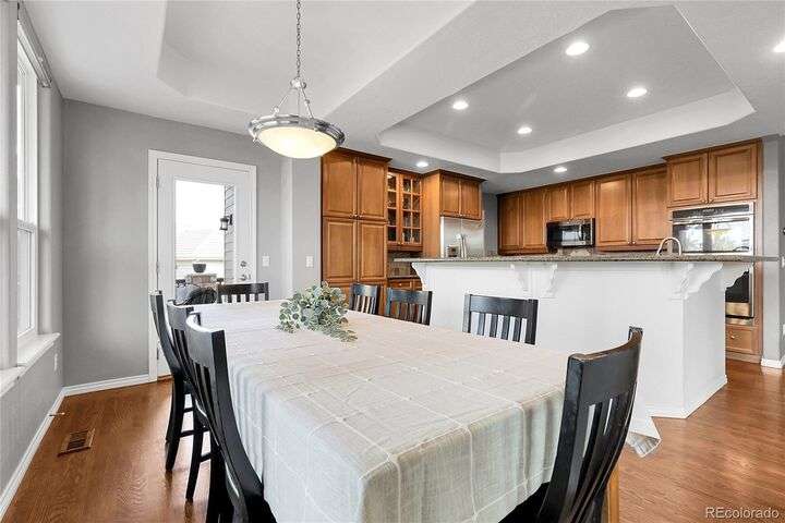 Stunning home in the highly sought-after Soaring Eagle Estates—one of the few semi-custom homes in this exceptional area. Enter through the impressive two-story foyer featuring gorgeous hardwood flooring. A generously sized office awaits you, complete with double doors and numerous windows that invite ample natural light. The formal living and dining rooms enhance the inviting atmosphere, perfect for entertaining guests or enjoying family meals. The kitchen seamlessly opens to the family room and includes a spacious dining nook, accommodating a table for eight, with convenient access to the private and expansive wrap-around upper deck. The family room, adorned with a wall of windows, high ceilings, and a cozy gas fireplace, serves as an ideal gathering place. Completing this level are a powder bath and a mudroom with laundry facilities. Upstairs, discover the luxurious primary suite, featuring a sitting room and private deck offering incredible views. The primary bath, spacious and airy, boasts a closet that will impress. Three additional bedrooms, each with direct access to a bathroom, provide comfort and convenience. The basement rounds out this amazing home and will not disappoint, featuring over 1,600 sq. ft. of additional living space. It includes a 5th bedroom, a full bathroom, a media room, game room, and a wet bar complete with granite counters, stainless-steel dishwasher, bar fridge, ice maker, and microwave with ample cabinetry and bar seating. Natural sunlight floods in through the numerous windows, and the space walks out to a lower covered deck, creating a generous area for play or relaxation. Enjoy the three outdoor deck/patio areas and a full backyard equipped with a built-in firepit and plenty of room for activities. The outdoor living experience is just as functional and spacious as the interior. Finally, don’t miss the hard-to-find attached four-car garage, offering all the space you need for toys, cars, and storage.