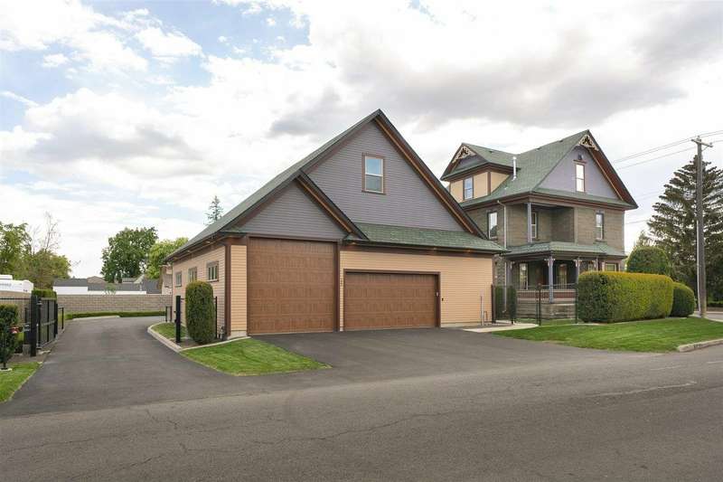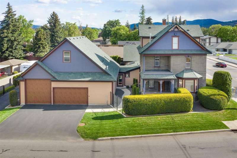 One of Spokane Valley's greatest gems - the original Van Marter Victorian Queen Anne home originally built in 1908, remodeled from 'studs in' with new wiring, new plumbing, new heating/cooling systems and addition of a large shop with office or additional living space. The original character has been kept in detailed wood-work, tile work, hardware and paint schemes. This glorious home would make a great residence for a car enthusiast or has potential for either a multi-family use or residence with professional office space. Potential to add more bedrooms. Current owners had used the fully finished shop space as an at-home office space. Wood beamed ceilings, quarter-sawn oak cabinets, Vertical Grain Fir doors and flooring, period hardware and lighting, radiant floor heating, central air cond., gated entrance, radiant floor heated R.V. garage with separate bathroom are just some of the features you find here! Square footage does not include any of the finished square footage of RV garage office space or loft.