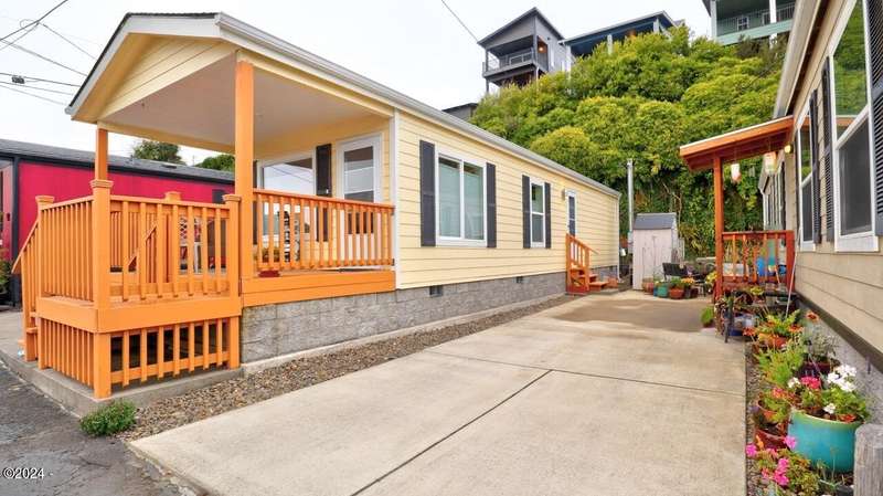 2014 Manufactured home in Highly Sought After space in Surfside Village located in the Heart Of Nye Beach. Move in ready with modern kitchen, bath and laundry. The parking space is double deep so guests won't need to park on the street. There is a shed for extra storage space and the beautiful patio pallet deck behind the shed offers unique privacy while being surrounded by scented flowers and nature. Just a few blocks from the beach, restaurant, boutiques and the Performing Arts Center. This well maintained 55 or older park is the perfect way to enjoy Life At The Beach! The Co-Op space rent is reasonable and provides security against skyrocketing escalation of rent!