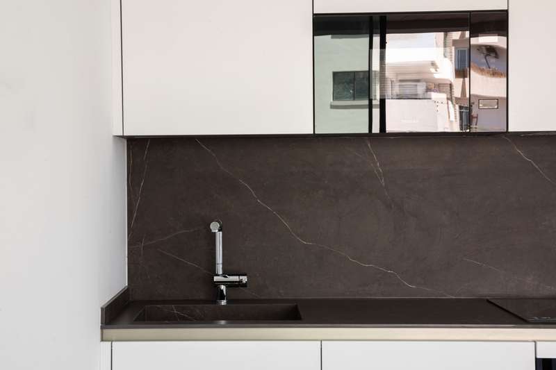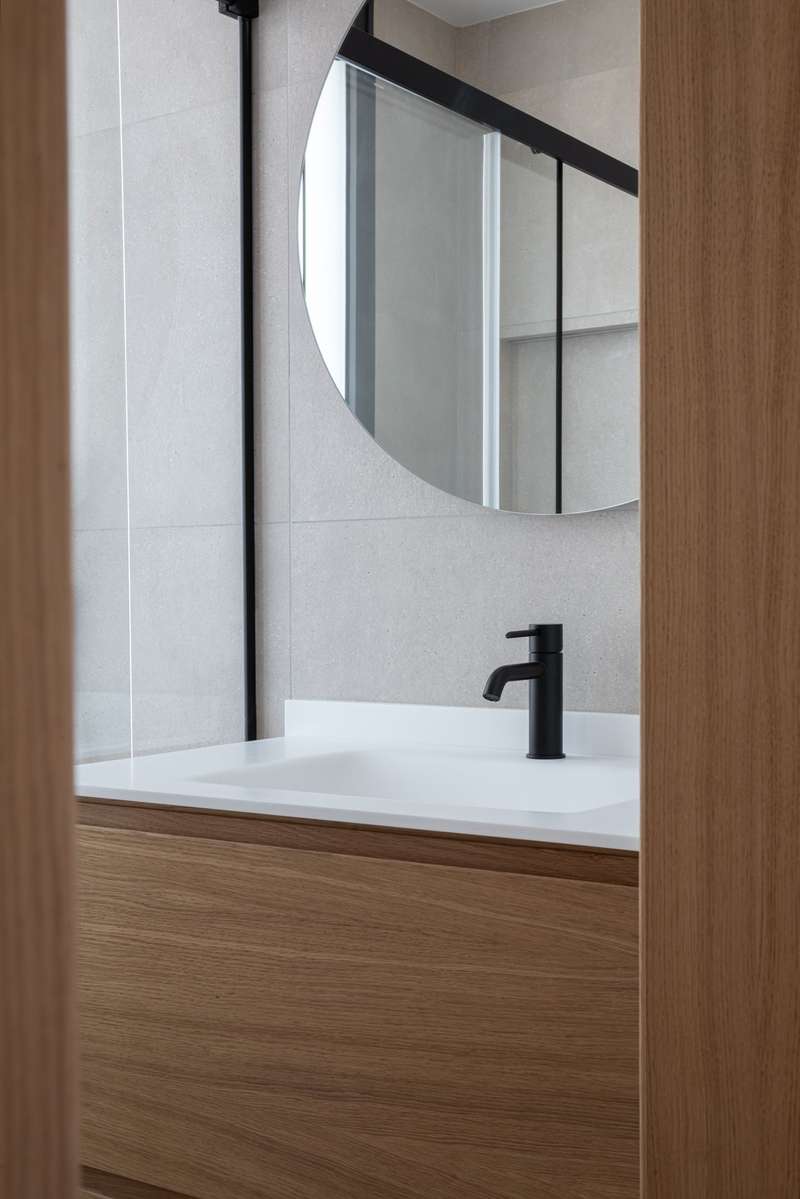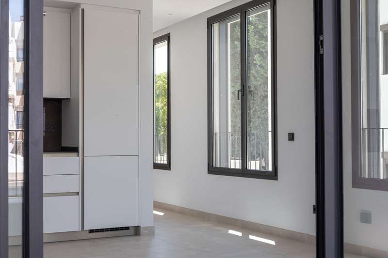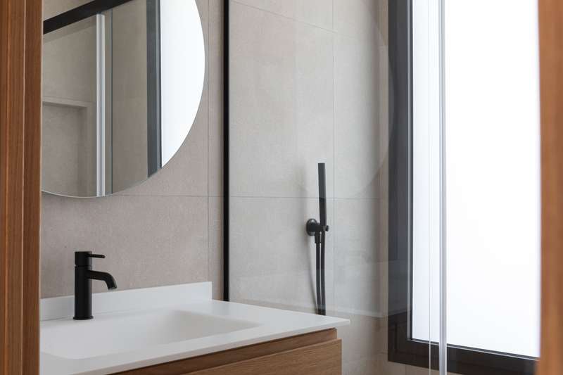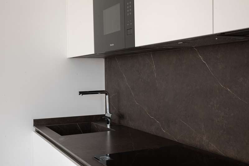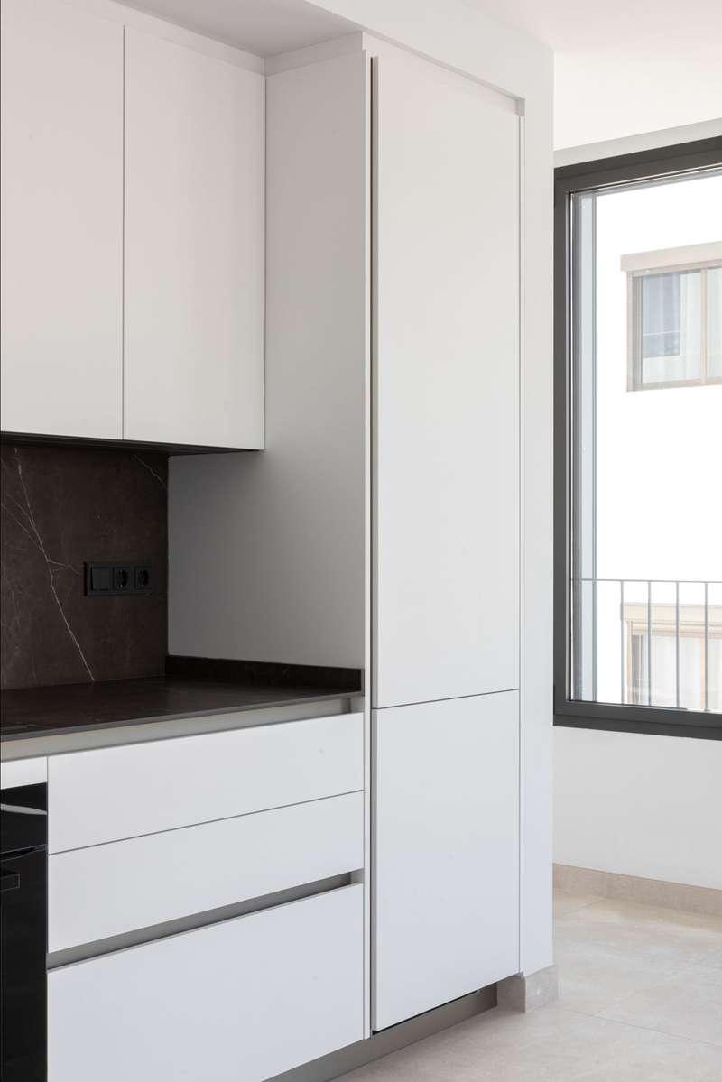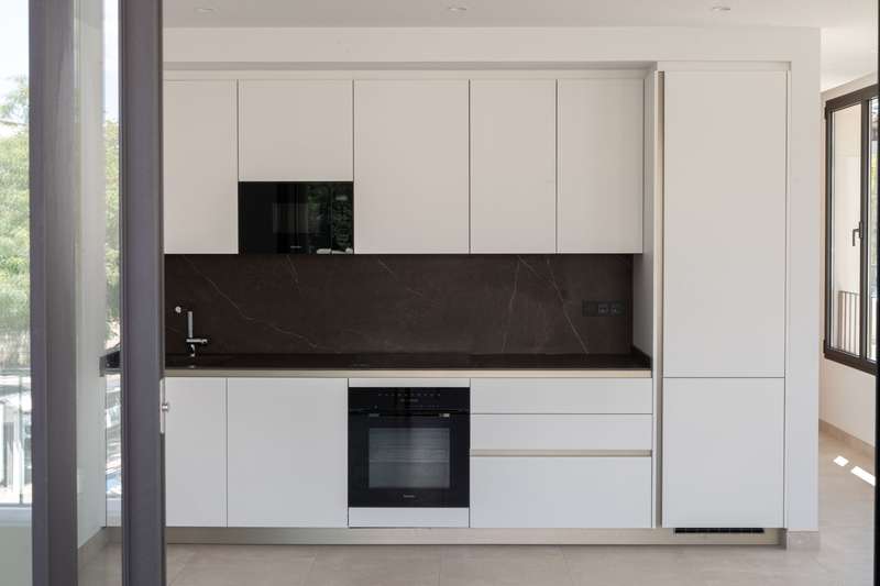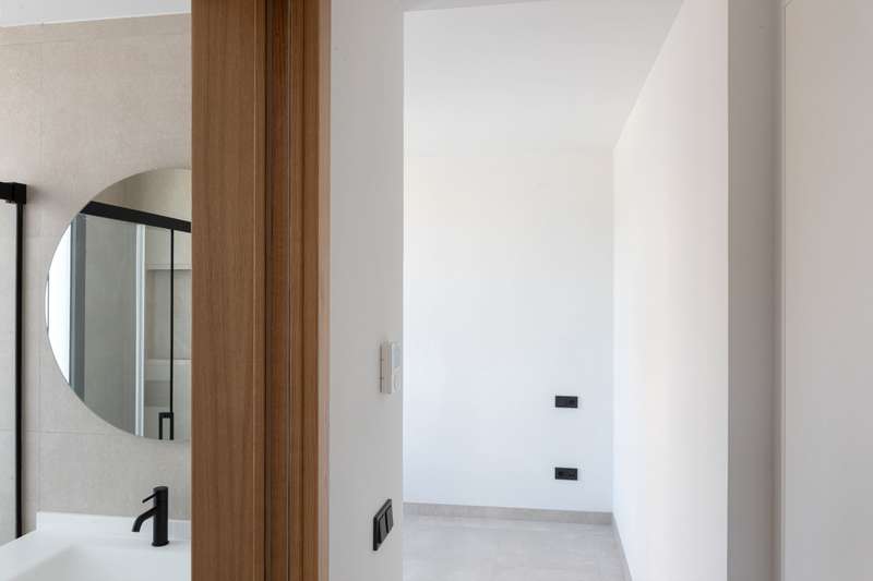 Designed to maximize natural light, with large floor-to-ceiling windows and doors leading to your private terraces, both covered and uncovered, it allows seamless in-out living throughout the year, thanks to Mallorca’s delightful climate. This exclusive two-bedroom apartment with 74 m² of indoor living space and 35 m² of exterior terrace space, offers a bright, open lifestyle both indoors and outdoors. The two sleek bathrooms, one of them en suite, feature contemporary glass shower doors, warm indirect lighting, solid surface washbasin, large wooden drawers, and round LED-lit mirrors. The equipment includes a 13 m² storage room, a washer and a dryer from Miele, underfloor heating and air-conditioning throughout ensure a pleasant living environment, no matter the season, indirect lighting to create a cozy atmosphere, porcelain stone-like floors from Porcelanosa, and Miele appliances in the kitchen to guarantee durability and refined style, all blending elegance and practicality, as we
