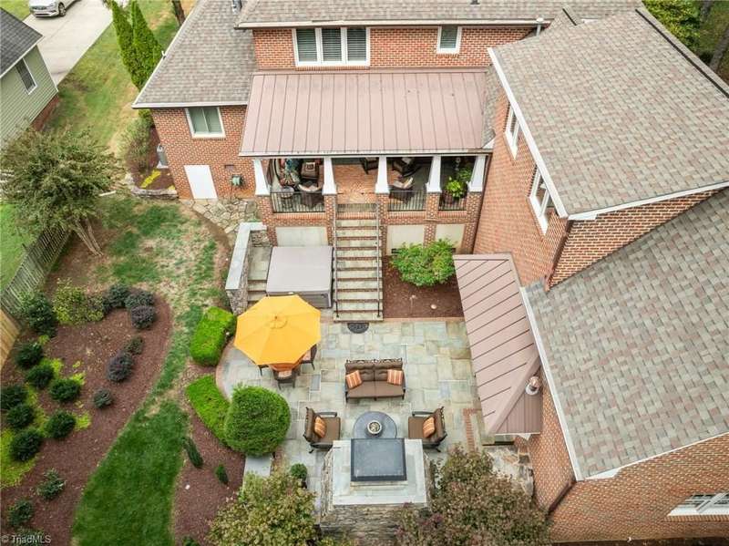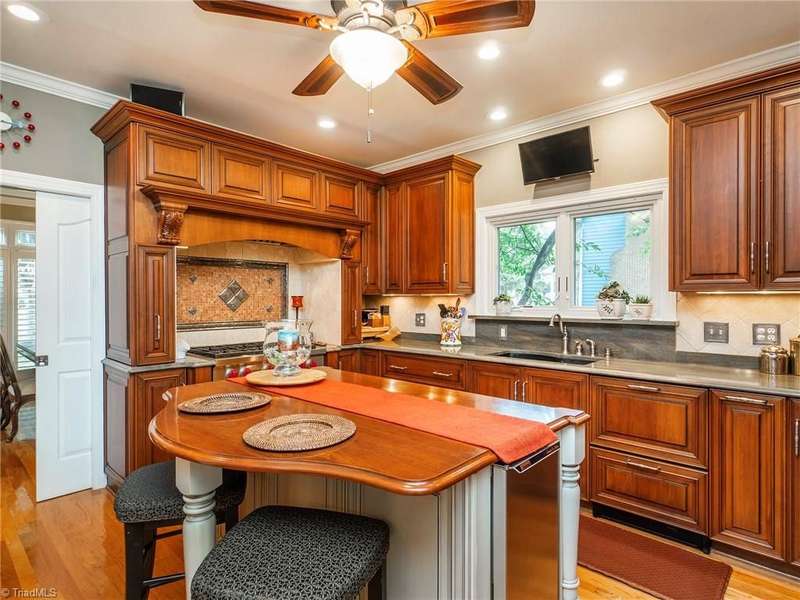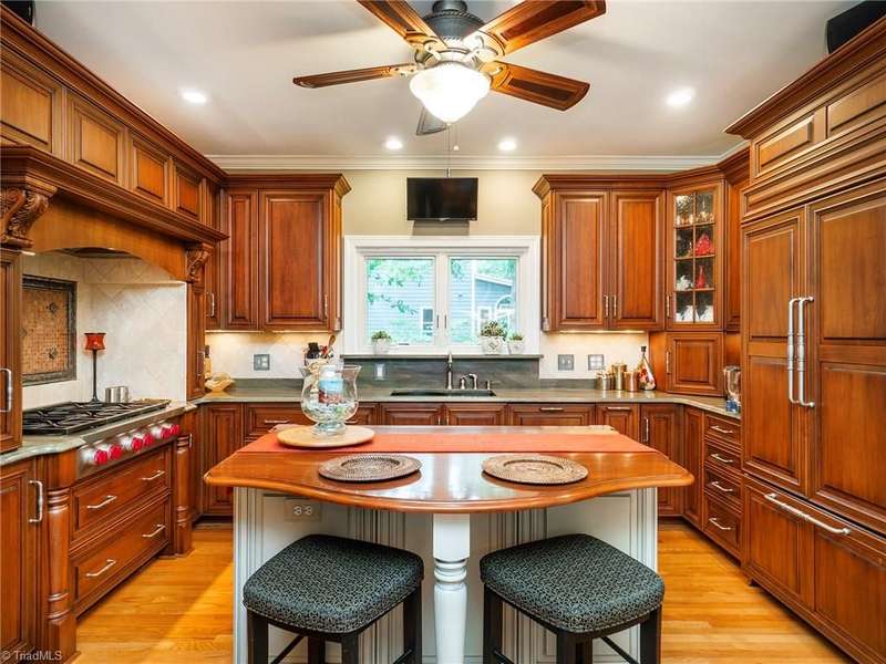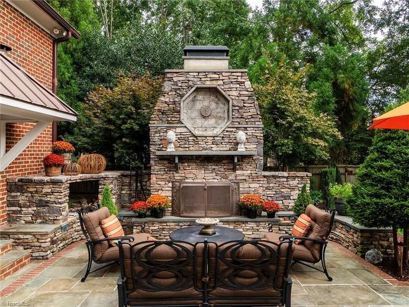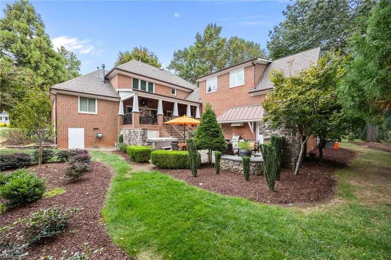 Beautiful brick home in Ashley Woods featuring a chef's kitchen with Wolf 6-burner cooktop, double Wolf ovens, built-in refrigerator/freezer, double-drawer dishwasher, drawer microwave & Scottsman icemaker. Main level includes 2-story foyer, office, dining, breakfast area, pantry, laundry (washer & gas dryer remain), and great room with gas logs, wet bar & access to a 25'x12' covered porch. Primary suite on main offers vaulted ceiling, dual walk-ins, built-ins, and spa-like bath with updated shower, jetted tub & separate vanities. Upstairs: exercise room, 3 bedrooms (one ensuite, one used as dressing room), and hall bath with 2 sinks. Bonus/game room with kitchenette, steam shower bath & separate HVAC accessible via upstairs or garage. Backyard features stone fireplace, patio, and outdoor kitchen with gas grill, burner & vent hood. Plantation shutters, irrigation on separate meter, updated exterior lighting, professional landscaping and more. Feature & update sheet upon request.