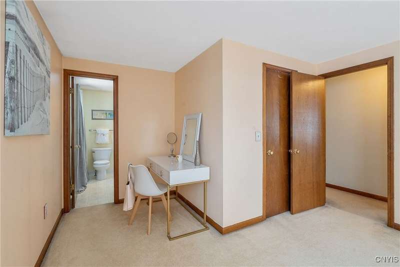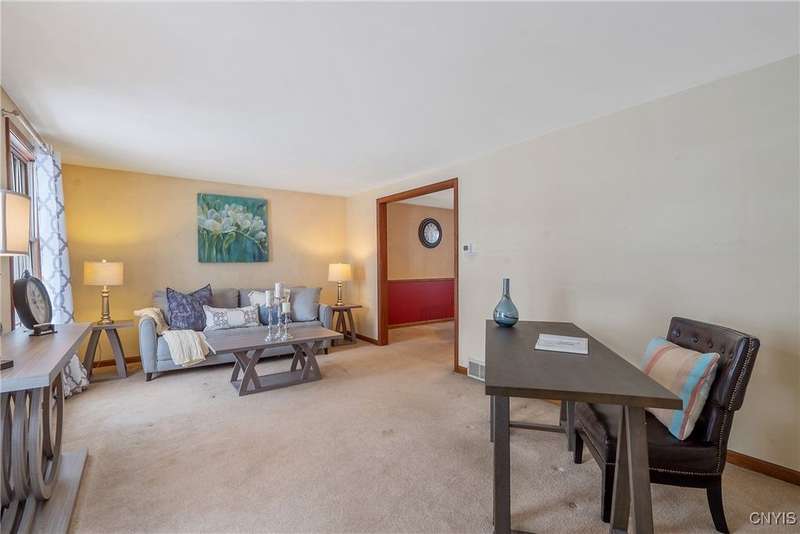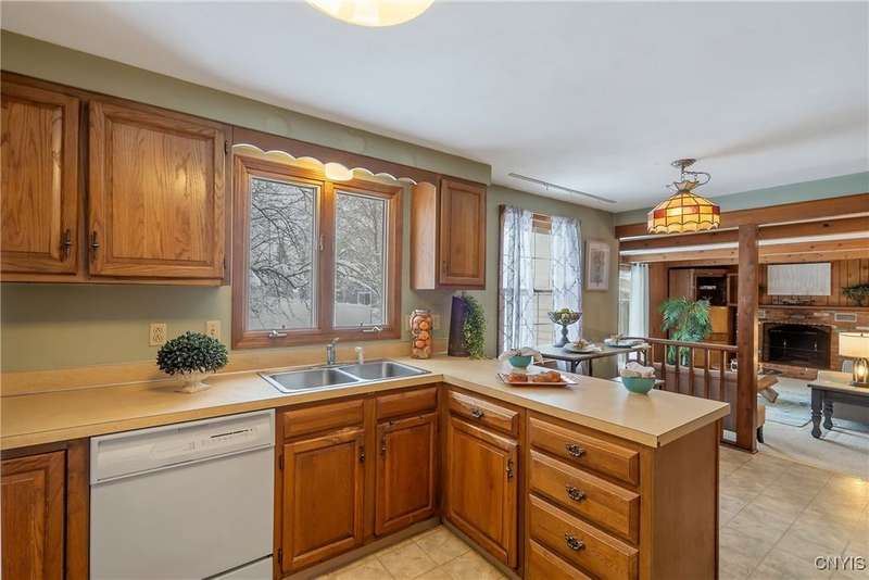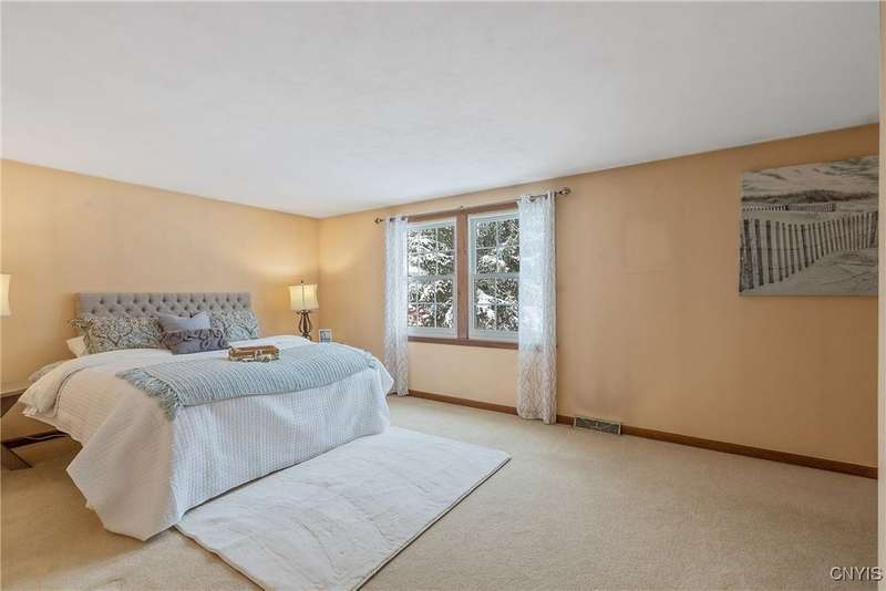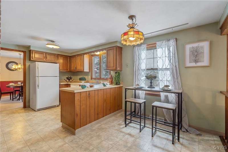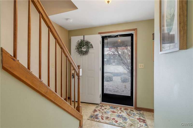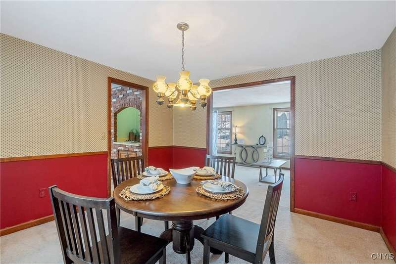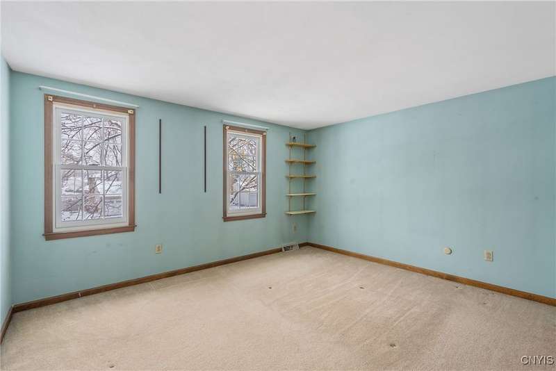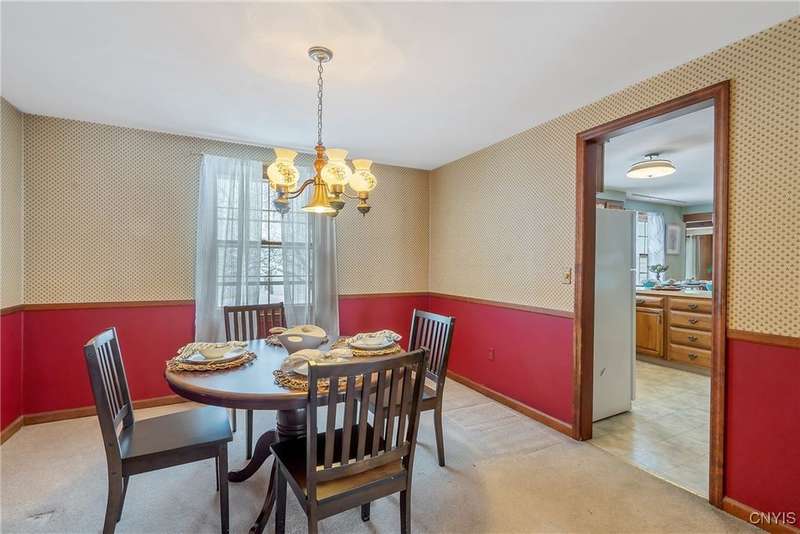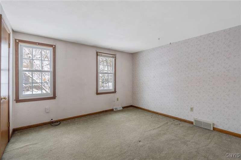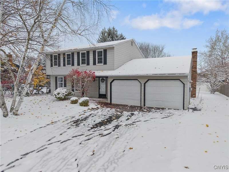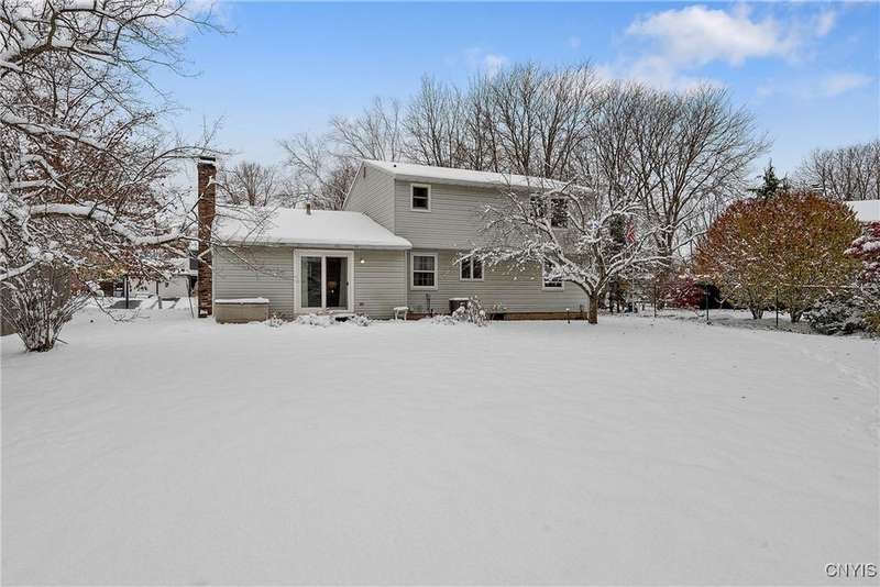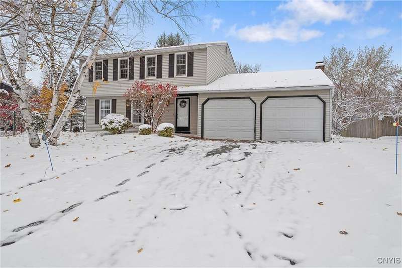 Classic Colonial with Endless Potential!Original owner! This well-built home offers quality construction and "good bones," ready for your personal touch and vision. A double-wide driveway leads to an attached two-car garage for easy parking and storage. The covered front porch welcomes you inside to a traditional foyer entry.Fabulous functional layout! The main floor features a spacious eat-in kitchen, a comfortable family room with a cozy fireplace and brand-new sliding glass door to the patio?perfect for enjoying the large, lovely backyard. A formal dining room, front living room and convenient half bath complete the first floor.Upstairs, you'll find three generously sized bedrooms and a large full bath. The primary bedroom connects to the full bath and has a large walk-in closet! The full, dry basement offers laundry, abundant storage, and excellent potential to be finished for even more living space. You will notice many hallmarks of quality construction, throughout this home - like steel I-beam construction and solid plywood subflooring. Updates include furnace, water heater and central AC!Set on a low-traffic, neighborhood street adjacent to a community greenspace/park, this home offers peace and privacy with proximity to every convenience. Located in the award-winning North Syracuse School District.
