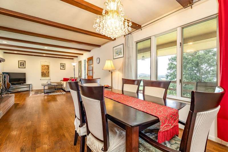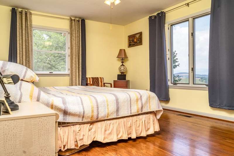 Nestled on 6.24 acres with a postcard-worthy backdrop, this stunning property offers breathtaking panoramic views of the Shenandoah Mountains & valley. Located in the highly sought-after Turner Ashby High School district and just minutes from I-81, convenience meets countryside tranquility in this rare find. The ranch-style home features a spacious layout with hardwood floors on most of the main level. A warm and inviting living room boasts a classic wood-burning fireplace, while the dining room and eat-in kitchen offer plenty of space for everyday living and entertaining. Four bedrooms, two full bathrooms, and a large walk-in pantry provide both comfort and functionality on the main level. The basement includes a large rec room and an unfinished storage area and garage. But the true hidden gem? A luxurious private spa space complete with a jetted soaking tub, marble tile, separate shower, sauna, and a massive picture window that frames the stunning mountain view—your personal oasis awaits. Outside, the property includes a mix of cleared and wooded land, perfect for gardening or simply soaking in the peaceful setting. A barn offers additional for hobbies, storage, or future projects - horses, anyone?
