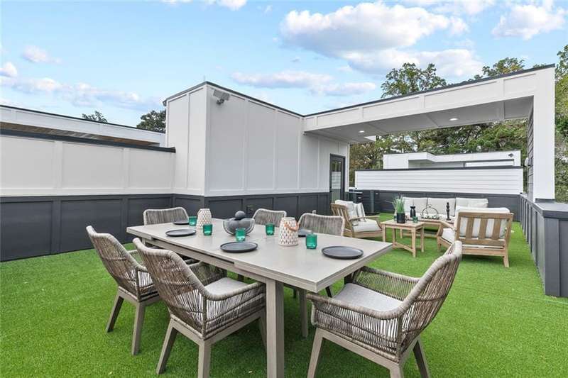 Turn off 8th Street and glide through the motor court into your private two-car garage, the beginning of something special. Inside, the first floor welcomes you with a bright, modern foyer, a full bath, and a spacious bedroom that doubles beautifully as a home office, complete with two closets for effortless organization. Ascend to the open concept main level where luxury meets design. The kitchen is a showstopper featuring one-of-a-kind marble countertops, two-tone cabinetry, a generous island for entertaining, walk-in pantry, and a sleek dry bar with a built-in wine fridge. Fulgor stainless steel appliances anchor the space, complemented by designer lighting and hardwood floors that flow seamlessly throughout. The dining area sets the stage for your first dinner party, while the elevated living room framed by corner windows offers striking views of the PDK runways below. A discreet half bath adds an extra layer of convenience for guests, and a large walk-in storage closet near the staircase ensures everything you need has a stylish place to stay tucked away. On the third level, the indulgence continues with an ensuite secondary bedroom, hallway laundry, and an elegant primary suite boasting dual walk-in closets with custom shelving and a spa-like bath featuring a double vanity, water closet, and oversized walk-in shower. And just when you think youve seen it all, the rooftop terrace steals the show. Stretching the full length of the home, it is finished in lush turf with panoramic views of Stone Mountain and the runway lights of Peachtree-DeKalb Airport. Perfect for sunset cocktails or midnight conversations, a gas line awaits your custom outdoor kitchen upgrade. Beyond the home, The Foxtrot offers an enviable lifestyle designed for those who move to their own rhythm. Surrounded by six parks and the sprawling 33-acre Ashford Park Reserve, outdoor adventures are steps away. Minutes from Emory University, top hospitals, major highways, and an array of dining and entertainment options, youll enjoy the best of urban living with the ease of a connected community. Experience luxury living at its finest at The Foxtrot, where prime location, exceptional craftsmanship, and unparalleled design converge to create a lifestyle unlike any other. At The Globemaster, every landing feels like a grand arrival.