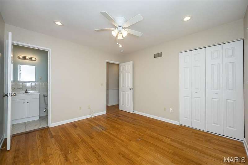 $8,000 PRICE REDUCTION!!! BALLWIN & METRO FIRE INSPECTION PASSEDMove in ready, full brick home on over 1/2 acre flat lot in the heart of Ballwin on a quiet culdesac street. Beautiful original wood floors throughout. New white kitchen cabinets, some 42 high. New black gas stove/oven, micro and disposer. Newer black dishwasher. Used black frig can stay. Spacious dining open to living and kitchen for todays informal lifestyle. Slider opens to huge screen porch. White vinyl thermo windows. Partially finished lower level with new flooring and there is an office room too with built in cabinets. Oversized 2 car garage (19+ X 23) with new opener. Updated/remodeled baths and fresh paint throughout. Some ceiling fans and updated LED can lights. Seller offering full coverage home protection plan. A real must see.