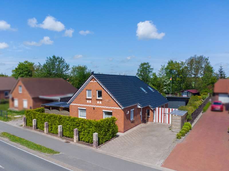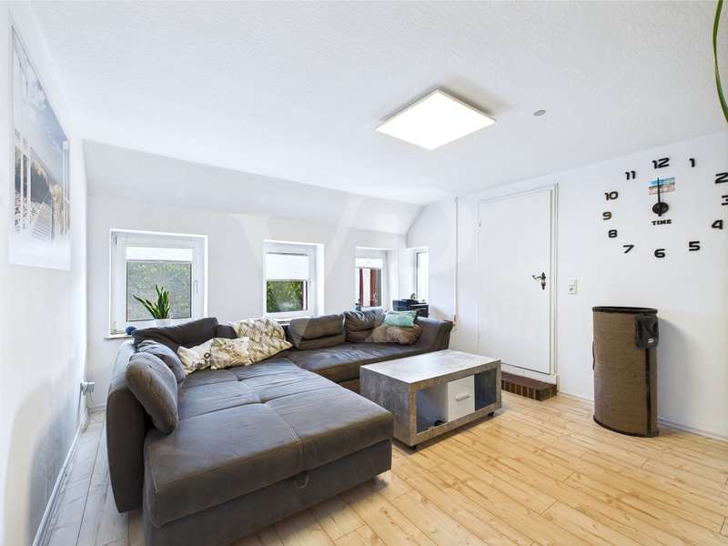 Built in 1956 and modernized in 2022/23, this detached house offers you a cosy family home on a plot of approx. 1,562 m². It impresses with its well thought-out room layout, high-quality modernizations and the spacious outdoor area. The house offers a perfect combination of comfort, functionality and plenty of space for the whole family - all within walking distance of numerous shopping facilities and the charming village center. The central location makes everyday life particularly convenient: everything you need is just a few minutes' walk away. In the course of the modernization in 2022/23, numerous renovation measures were carried out in the interior, giving the house a contemporary, high-quality character. For example, the bathroom was completely renovated in 2022 - with a walk-in shower, bathtub, modern fittings and stylish design. The fitted kitchen was also newly installed in 2022 and not only offers the latest technology, but also a wonderful view of the garden. The heating system was also modernized in the same year - it is located in the adjoining utility room, which also offers space for a washing machine and dryer. The first floor has a light-flooded living room, a room that can be used flexibly (e.g. as a guest room or study), an office and a bedroom - ideal for barrier-free living. The open and friendly design creates a pleasant living atmosphere. The staircase in the entrance area leads to the upper floor. Here you will find another bedroom, a practical storage room and a generously sized attic room, which offers additional storage space or can be used as a hobby or creative room. The outdoor area of this house is simply impressive: a spacious terrace invites you to sunbathe, barbecue or enjoy a cozy get-together with family and friends. The spacious garden is a true green oasis - idyllic, peaceful and well-kept. It offers an extraordinary amount of space for free development: whether a play area for children, a creative retreat or a spacious kitchen garden - there are virtually no limits to your imagination here. Two sturdy sheds offer plenty of storage space for garden tools, bicycles or other utensils. In addition, a charming garden shed at the rear provides a variety of uses - whether as storage space, a retreat or a creative studio. The large garden opens up countless possibilities for individual design: whether as a blooming flower or vegetable garden, a play paradise for children or a place for outdoor events - your dream home can become reality here. This house combines modern living with a central location and a fantastic garden paradise - ideal for relaxed family life or flexible use according to your personal ideas. See this unique offer for yourself during a personal viewing and discover the numerous potentials of this property!