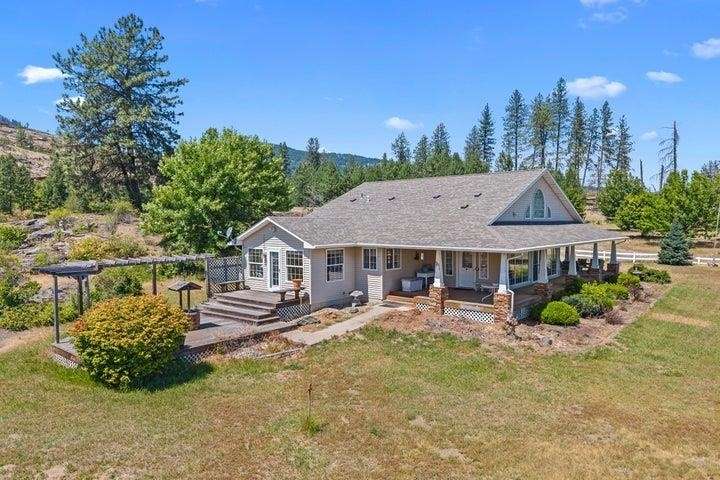 Make this your home! 160 plus acres over looking Lake Roosevelt. Custom designed ranch style home exquisitely decorated throughout. Walk into the large living area with gas fireplace and built in cabinetry. Vaulted ceilings with large windows to take in all the views from this private retreat. Open stairway leads to spacious open hobby room could also be additional bedroom. Large primary bedroom with private suite bath and walk-in closest. Bright kitchen with island and lots of cabinetry including a built in desk. Just off the kitchen, you will find spacious laundry room to backyard. Additional sitting room off kitchen for relaxation. Detached 2 car garage, 30'x30', plus large 36'x40' insulated shop with RV doors. Wired for backup generator. Some ponds. Could be subdivided. Lake views.