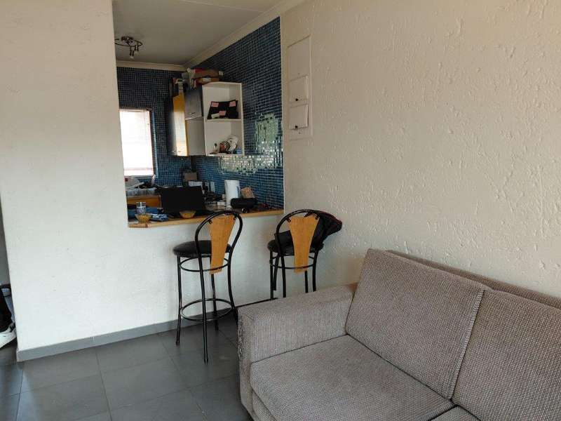 Starting out or looking for a lock up and go , then this upstairs unit may be the one. Comprising open plan living area which opens onto a sunny, north facing balcony. The kitchen is small but well appointed. One bedroom with built in cupboards and a bathroom. One covered parking bay, pool in complex and 24 hour access controlled security. Asking R550.000. No pets permitted. For less than R5500.00pm on a bond, why rent?