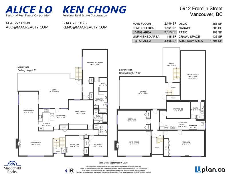 We talk about prime in terms of location…. W43rd & Fremlin St (SE corner)...a lot size of 69.57' x 120' (approx)...largest lot on the block. We talk of a home, this has been truly been that for the owners… it’s spacious, sprawling living on one level with 2149 SF on the main level, plus a further 1404 SF down. Fantastic home to live, to enjoy and to grow. 5912 Fremlin is centrally located, with the new Oakridge City just blocks away, Canada Line Stn as well. Excellent family home, phenomenal redevelopment/holding for the future (duplex or multiplex under the R1-1 zoning). Added feature: Air Conditioned + an attached 2 car garage. Priced to capitalize on all of the potential… Make that appt now.