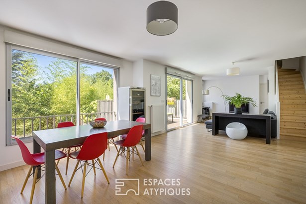 In Lyon's 5th arrondissement, a two-minute walk from Place Benedict Teissier, this 110sqm duplex apartment with a terrace is located on the first floor of a recent building built in 2016. On the first level, it features a spacious living room with an open kitchen and a master suite with a shower room and dressing room. A laundry room completes this level. Upstairs, younger guests will enjoy two beautiful bedrooms with fitted wardrobes and a bathroom. To make the most of those beautiful summer evenings, a beautiful 20sqm west-facing terrace is accessible as an extension of the living room. Close to all amenities, this apartment enjoys a prime location. 2 garages in addition Subject to the status of the co-ownership: 17 lots Annual charges: EUR2,160 Energy class: C / Climate class: C Estimated average amount of annual energy expenditure for standard use, established from January 2021 prices: between EUR960.00 and EUR1,340.00. Contact: Aurelien - 06.32.21.70.25