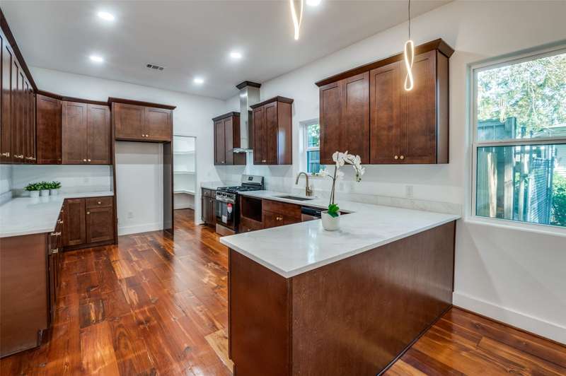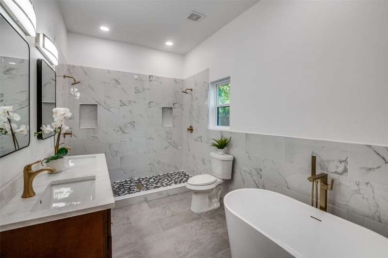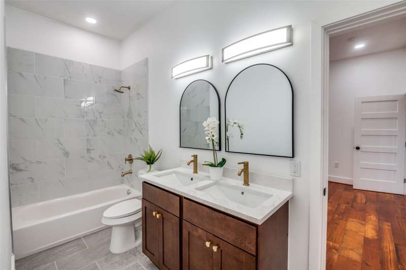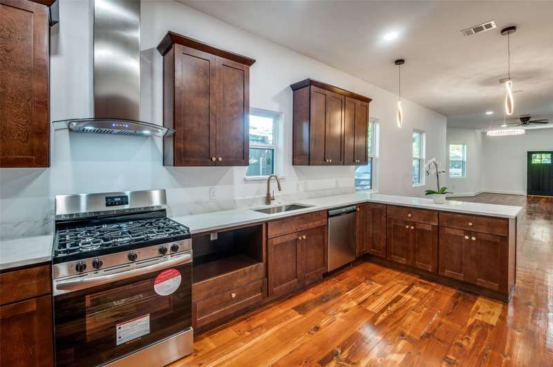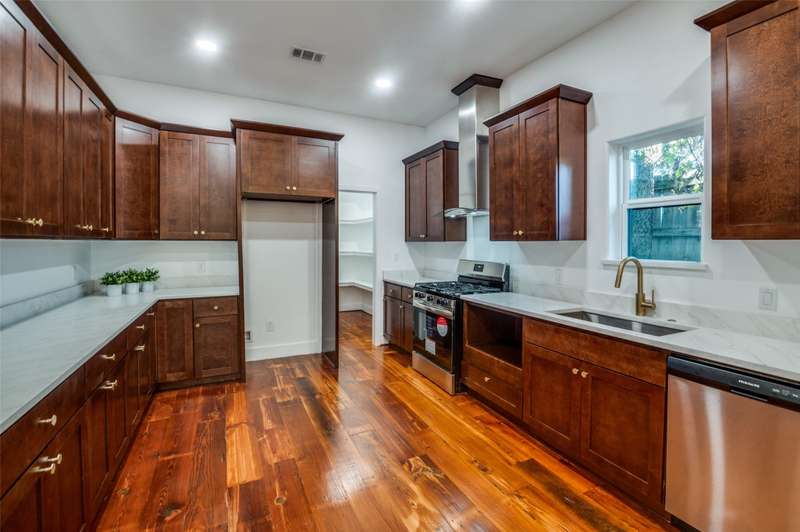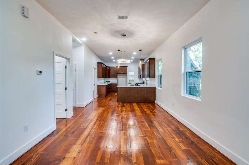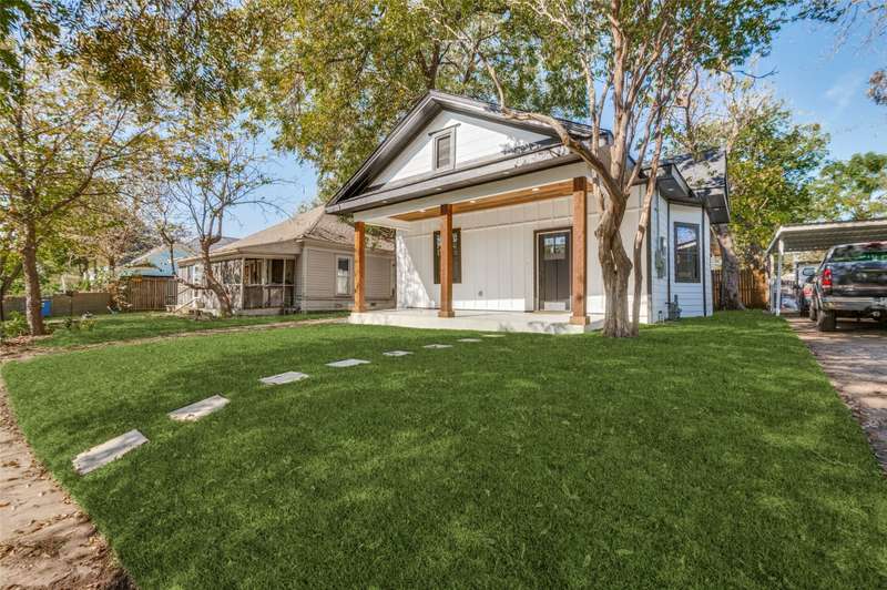 Welcome to the Mount Auburn neighborhood, minutes from downtown and Deep Ellum, and blocks from the Santa Fe Trail, Samuell-Grand Park, Tenison Park Golf Course, Fair Park, and historic East Dallas. This charming 1907 home has been brought back to life with a thorough and thoughtful renovation. From the moment you enter, you'll be wowed by the gorgeous heart pine flooring which is reclaimed shiplap from this very home. Beautiful maple, soft-close cabinetry, and Calacatta gold quartz counters are standouts in this kitchen, which also features an oversized, walk-in pantry. The split bedroom floor plan includes an inviting primary suite with a spa-like bath, double shower, and walk-in closet. The secondary bedrooms share a generously sized bathroom with dual sinks. Plus a powder room for your guests! This down-to-the-studs renovation delivers a beautiful, like-new home with 100% new systems including energy-efficient spray foam insulation, a new roof, new windows throughout, a tankless gas water heater, new HVAC, and new electrical and plumbing. Schedule your visit today! Be sure to inquire with the seller's agent about SPECIAL FINANCING-ZERO DOWN-NO PMI & RATES AS LOW AS 5.8%.