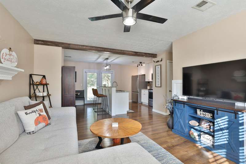 Absolutely adorable! Nestled on a quiet cul-de-sac with a park-like view, this move-in ready brick ranch home backs to a stocked catch-and-release pond—your own private retreat. Inside, the kitchen shines with white cabinetry, granite countertops, stainless steel appliances, and hardwood floors that flow through the kitchen, breakfast, and living areas. With no-step living, a fenced backyard, and bonus storage from both a new shed and walk-up attic, this home blends style, function, and comfort. Plus, enjoy community perks including an updated pool, tennis courts, and clubhouse. Conveniently located just minutes from I-75, this is a smart alternative to renting and a chance to own something truly special.