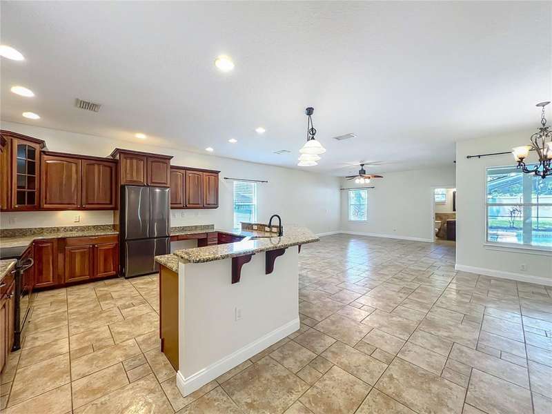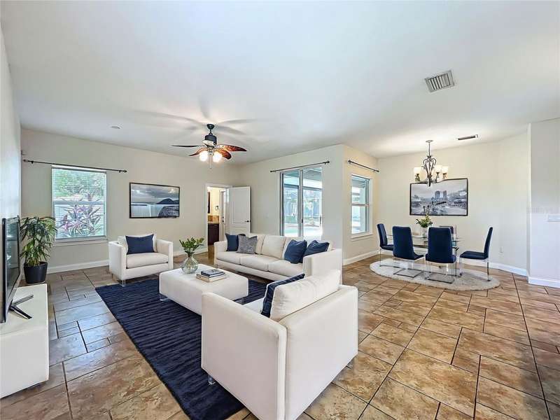 **Just Reduced Over $25,000!****Your Dream Home with a Beautiful Saltwater Pool & Spa!** Enjoy Florida living at its best with this stunning screened-in saltwater pool and spa featuring waterfalls and color-changing lights-perfect for relaxing evenings or weekend gatherings. This spacious 6-bedroom, 4-bath home offers over 3,300 sq. ft. of comfortable, stylish living with beautiful wood floors, crown molding, and soaring ceilings that create an open and welcoming feel. The formal living room features a cozy wood-burning fireplace, while French doors lead to a private office-ideal for remote work or quiet study. The elegant dining room is perfect for entertaining, and the open kitchen and family room design makes everyday living a breeze. The kitchen includes granite countertops, 42-inch cabinets, stainless-steel appliances, and a large breakfast bar. The first-floor master suite provides a peaceful retreat with a spa-inspired bath featuring dual vanities and an oversized tile shower with dual showerheads. Upstairs, four additional bedrooms and two full baths offer plenty of space for everyone. Outside, enjoy the large paver patio, fenced yard, and even room to park your boat. Recent updates include a **NEW ROOF (2022, lifetime warranty)**, **newer HVAC systems**, **appliances less than a year old**, **fresh interior paint**, and a **new pool filter**. Fantastic location near great schools, shopping, restaurants, and historic downtown Clermont. Minutes to the Clermont Chain of Lakes for boating and fishing, 35 minutes to Disney, and 30 minutes to the Orlando Airport.
