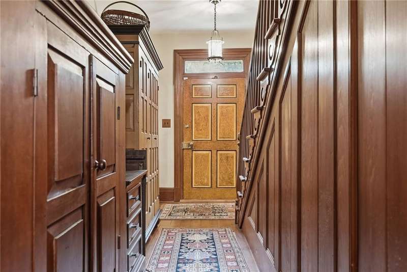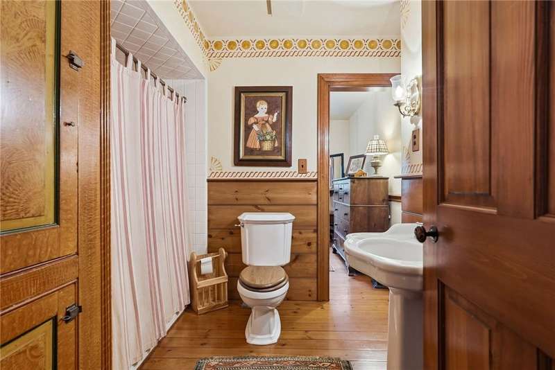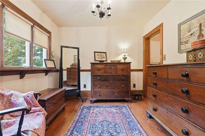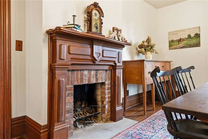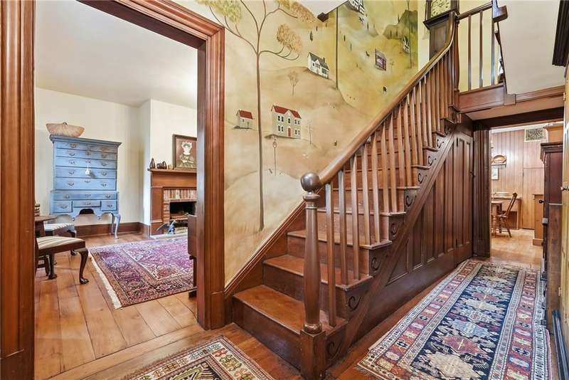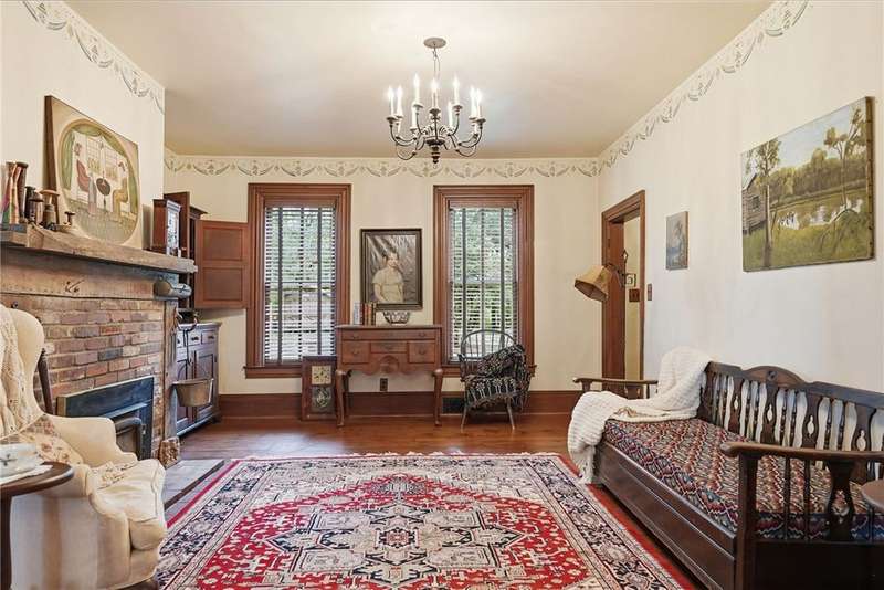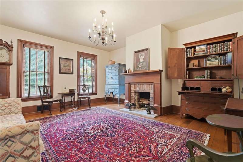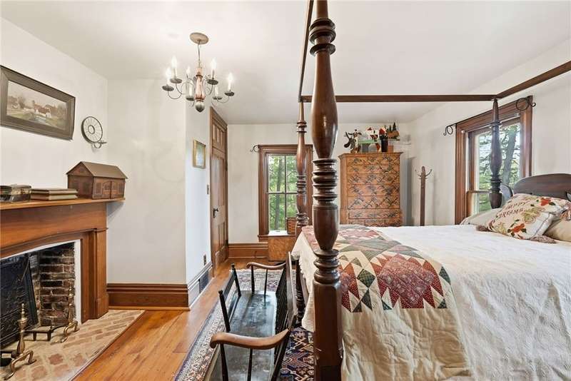 Step back in time with one of Upper St. Clair's heritage homes, beautifully restored over the past 50 years to preserve its authentic character and craftsmanship. Nestled on a serene and private 1.7-acre setting, this timeless property boasts period details throughout- seven fireplaces, beautiful hardwood floors, two staircases, hand-painted murals and lighting thoughtfully selected to compliment the home's era. The spacious main level features a family room with woodburning fireplace, a dining room with porch access, a formal living room and kitchen with original built-in cabinetry. Take either staircase upstairs to discover four bedrooms, highlighted by the primary suite with private dressing room. A charming, detached summer kitchen offers endless possibilities for guest space, entertaining or creative projects. Outside, enjoy time on the covered porch, side patio or in the expansive backyard. A wonderful opportunity to own a piece of history.