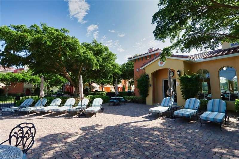 AVAILABLE NOVEMBER 2025. Gorgeous Annual Unfurnished rental! Live in one of the most talked about communities in SW FL! This coach home is located in the private section of the Mediterranean style resort community - Rapallo, THE ENCLAVE, with it’s own gate, pool and lake house with grills and a catering kitchen. Being in the Enclave also allows you to use all the amenities in the main part of Rapallo, which are Clubhouse with full catering kitchen, library, manned fitness center, sauna, two lagoon style pools with rock grotto waterfalls, spa, 5 har tru tennis courts with full time tennis pro, full time activity director, bocce ball, walking paths, fishing piers, fountains galore, and the best part walk to the Coconut Point Mall for shopping and great dining choices. This is the most popular of the coach home floorplans, it’s a ground floor end unit with lots of natural light. The kitchen is made for entertaining, lots of cupboards and a pantry. Gorgeous views out to lake and fountain from the great room, lanai, and master bedroom. Master bath has a large walk in shower, and the second bath has a deep soaking tub. Plenty of storage in the one car garage, minutes to the beautiful beaches and only 12 miles to the International Airport. This home includes water, cable, and WIFI!