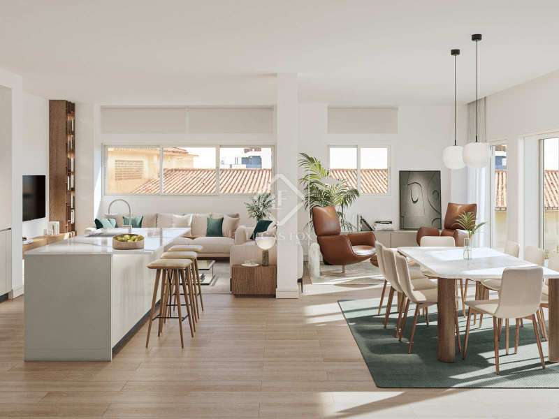 This project consists of two exclusive duplex properties located on Monte de Sancha Street, 200 metres from the beach. This new build home provides plenty of privacy, whilst enjoying a private terrace and lovely views of the Mediterranean Sea. The interiors feature a polished, contemporary design with high quality materials and finishes, as well as an integrated home automation system for added convenience. This 108 m² duplex offers a living room, dining room, kitchen, guest toilet and terrace on the entrance level and 2 bedrooms and a bathroom on the upper floor. The Monte Sancha development combines modern and traditional elements to create a unique living environment. In these new homes, you will find quality materials by prestigious brands such as Porcelanosa tiles, Gamadecor kitchen furniture, and Noken bathroom features, to name just a few. What's more, these homes are eco-friendly thanks to the solar panels, which also help reduce energy costs. Both homes have a parking space available for an additional 40.000€ + VAT. Please contact us for further information.