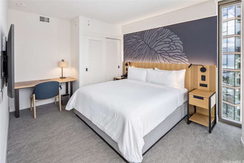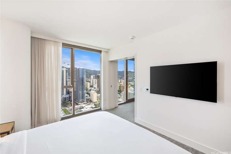 Welcome to your residence in the sky at Sky Ala Moana, a stunning high-floor one-bedroom home offering an exceptional blend of modern luxury and breathtaking views. Every day feels like vacation at this condo that features abundant natural light from floor to ceiling windows and panoramic city and mountain views. Contemporary kitchen and interior finishes create a sleek, inviting space, while the open floor plan maximizes comfort and style. The unique onsite spa at Sky Ala Moana includes and onsen-like ofuro unlike any other Honolulu luxury property. Located in Honolulu's vibrant urban center, this rarely-available residence offers unmatched convenience with shopping, dining, and entertainment at Ala Moana Center just steps away. Ala Moana Beach Park and Magic Island, some of Oahu's best swimming and surfing beaches, are just steps away. Sky Ala Moana is a perfect mix of city living and tropical beauty. 3312 is a high-floor gem that provides the ultimate in elevated living, and is a legal short-term rental with a hotel management, allowing the owner to earn passive income when not actively using the property.