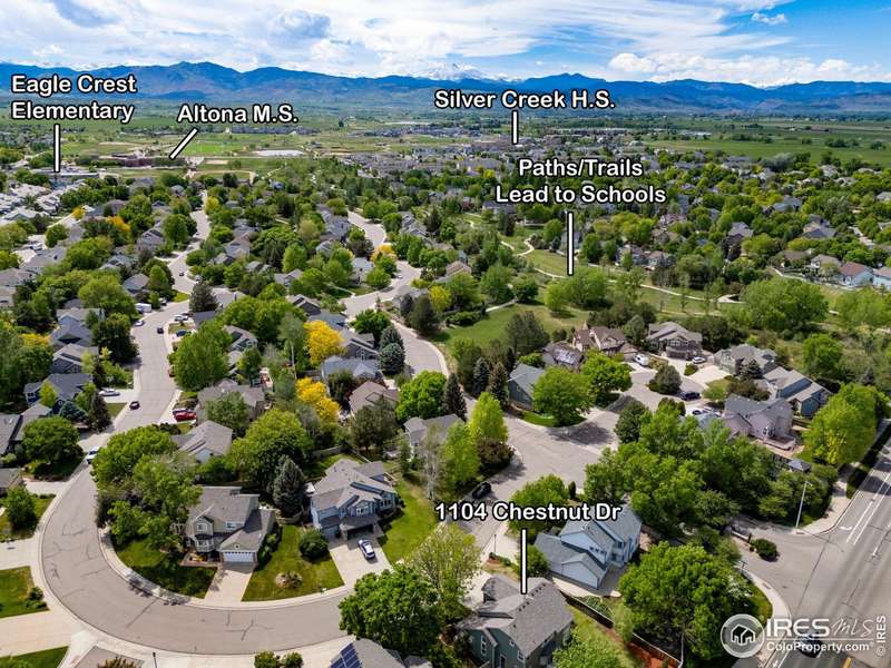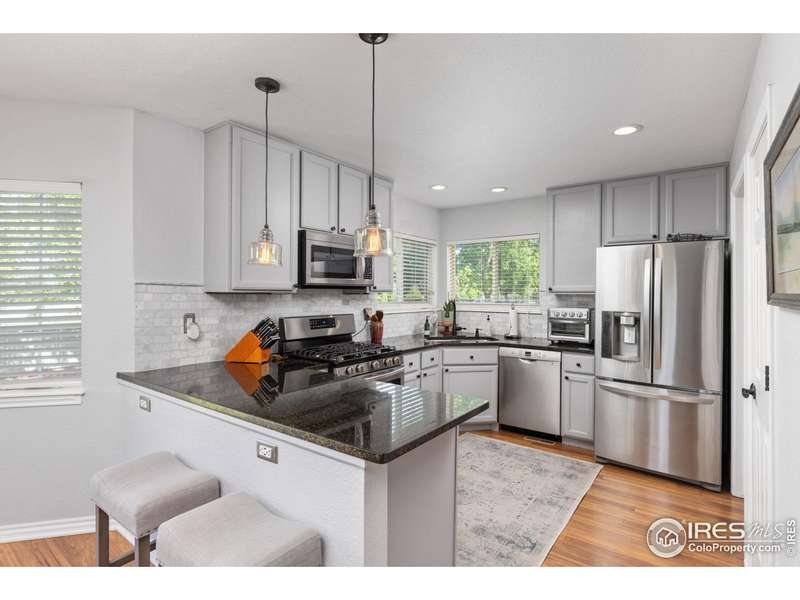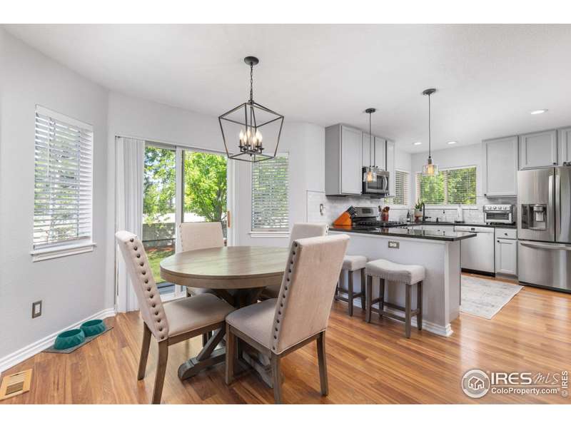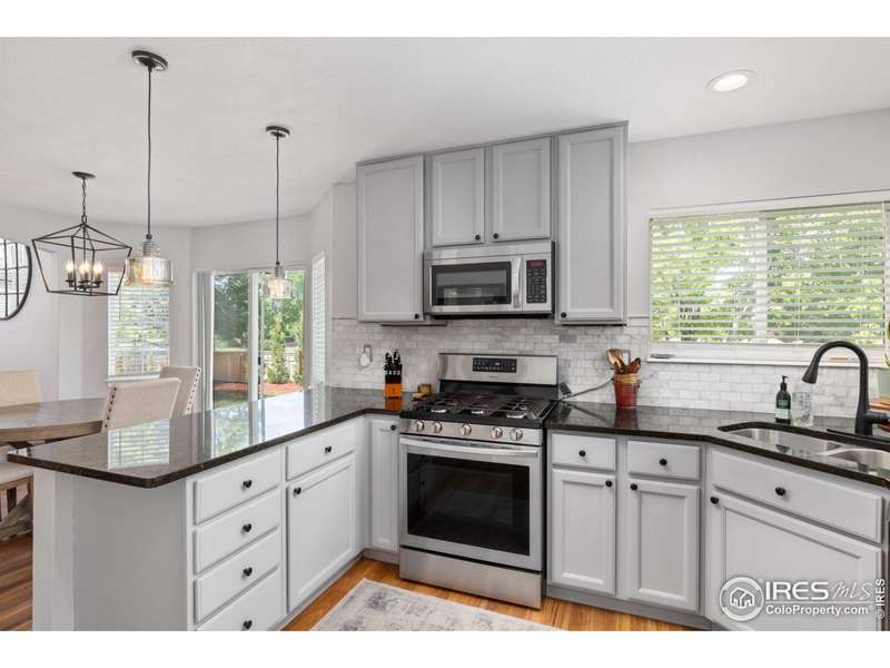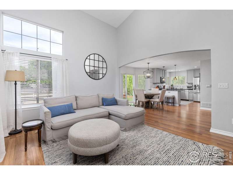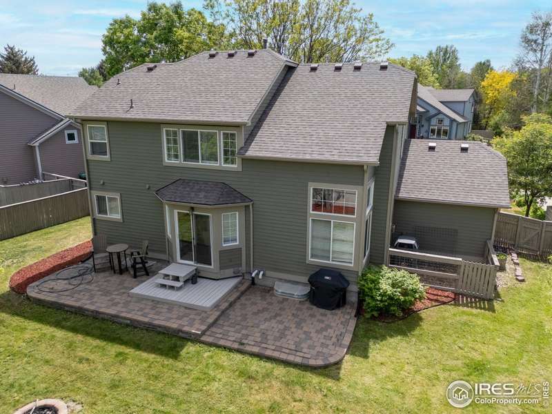 Impressive two-story home located in one of SW Longmont's most sought-after neighborhoods. This 4 bedroom, 4 bathroom beauty shines bright with vaulted ceilings and expansive windows that fill the living areas with natural light, while custom shiplap accents add a touch of modern charm. The redesigned kitchen features granite countertops, abundant storage, and a seamless flow into the casual dining area and family room with a cozy fireplace. Step outside to the expansive backyard paver patio-an ideal space for gatherings or relaxation among mature trees. The primary suite is a luxurious retreat with vaulted ceilings, a spacious walk-in closet, and a spa-like ensuite bath featuring a glass-enclosed walk-in shower and dual vanity. Two additional spacious bedrooms and full bath complete the upper level. Designed for flexibility, the finished basement is perfect for multigenerational living or guest accommodations, offering a second kitchen/wet bar, a living area, spacious bedroom and bathroom. Additional highlights include a main level laundry room with utility sink, a three-car attached garage. Don't miss the extensive paths (Dry Creek Trail) leading to top rated schools, multiple parks and playgrounds. Only minutes to Village At The Peaks with Whole Foods, Sam's Club, restaurants and so much more! - This exceptional home offers a tranquil setting and a lifestyle of comfort and convenience. Don't miss the opportunity to make it yours, schedule your showing today!