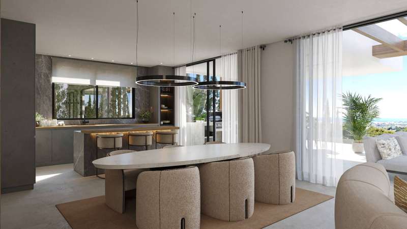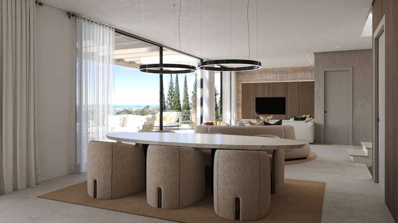 In a scenic and highly sought-after location surrounded by nature's beauty, you'll find a collection of 12 luxury villas boasting modern elegance. Tucked away in peaceful surroundings, each villa is carefully designed to blend harmoniously with its natural setting, offering a tranquil and exclusive living experience. Conveniently positioned between Estepona and Marbella, our villas enjoy panoramic views while still being easily accessible from major roads. Situated near La Resina Golf Club on the New Golden Mile, our retreat provides a perfect balance of tranquility and convenience. Designed to maximize natural light, each villa features large windows and high ceilings, creating a bright and airy atmosphere throughout. With careful attention to detail, our homes offer unobstructed views of the Mediterranean, providing a sanctuary for relaxation and contemplation. Experience the luxury of soaring ceilings and breathtaking views as you step into our architectural masterpiece. Our vill