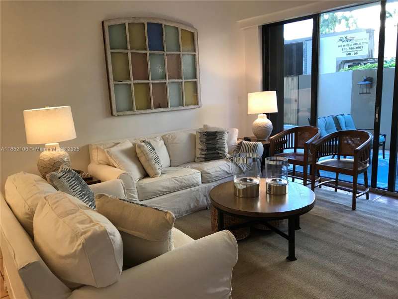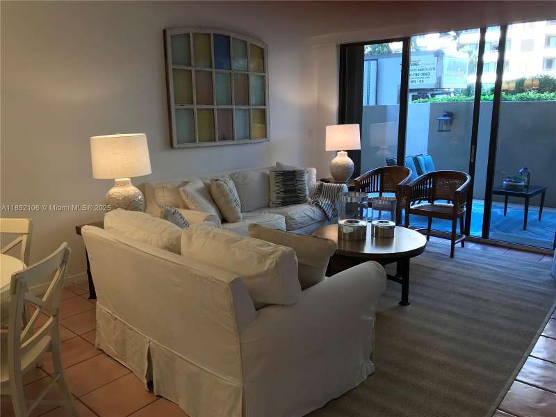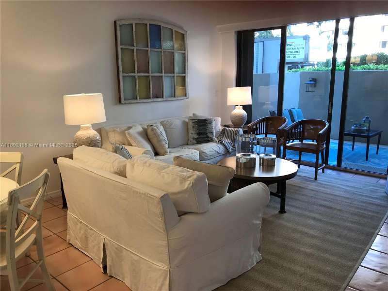 Reduced for a quick rent! Long term prefered.Tidemark at Key Colony best LANAI with patio unit for rent. Furnished and equipped. Located at 1st floor with large patio with easy and direct access to the beach. Substantially renovated. Over 1000 sqft large 1 bed 2 full baths. High ceilings, open kitchen and large pantry. New appliances. Washer and dryer inside. Living and dining with beach flavors decoration w/ sleep sofa. Master bedroom w/ spacious walk-in closet, king size bed and extra twin. Renovated marble bath. Resort style building w/ security, management on site, pol, gym, parking, tennis courts, beach access, recreational room...etc. Steps to Key Biscayne shops and restaurants. Available soon , 6 months minimum, preferable 1 year NO PETS