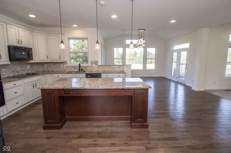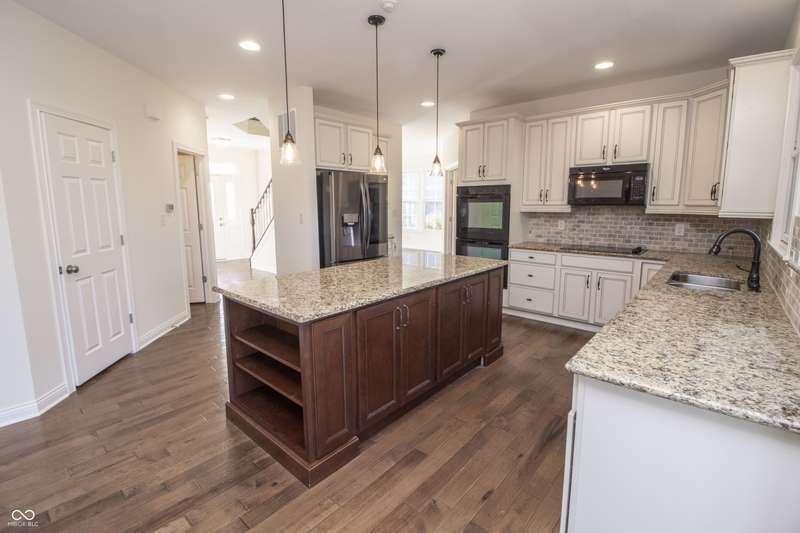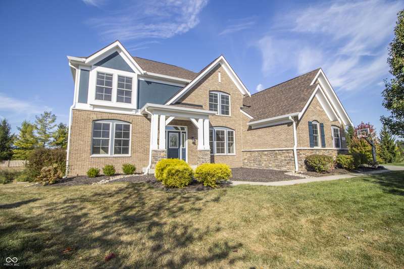 This Fischer built home features 4 bedrooms & 3.5 baths, perfectly situated at the end of a quiet cul-de-sac. Meticulously maintained, this property showcases numerous upgrades including brand-new carpet & fresh interior paint throughout (October 2025) which beautifully complements the hardwood floors on the main level. The exterior boasts a newer roof, gutters, and downspouts installed in 2023, along w/modern exterior lighting, a tankless water heater, sump pump/w battery back up, water softener, and a top-of-the-line refrigerator added in 2024. The dishwasher was replaced in 2022, & that same year, the exterior was painted and a gorgeous stone fire pit off the large back deck was added. The low-maintenance composite deck, installed in 2014, is perfect for entertaining while enjoying breathtaking sunsets and pond views which is also visible from inside the home. The spacious yard is ideal for backyard games or gardening in raised beds. The finished 3-car side-load garage features ample shelving for storage, and the large concrete driveway offers great space for basketball, complete w/ a goal that stays. The flexible floor plan includes dual-purpose rooms to suit your lifestyle. The front room can serve as a dining room or additional living space, while an office can function as a den or guest room. The space backing up to the deck can serve as a dining room or sunroom. The family room features a cozy gas fireplace for chilly nights and large windows to enjoy beautiful sunsets from the couch. Upstairs, all four bedrooms are generously sized, w/ the primary suite featuring a huge walk-in closet & a bathroom complete w/ a walk-in tile shower, garden tub, & separate dual vanities. The kitchen is a chef's dream, boasting a large center island w/ storage underneath, a large pantry, double ovens, granite countertops, & a tile backsplash. Downstairs, the massive rec area is filled w/ natural light from egress windows, accompanied by a full bathroom & 2 unfinished areas.