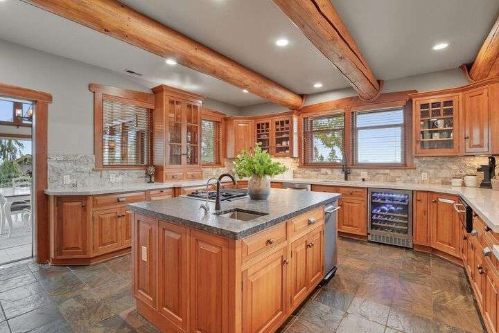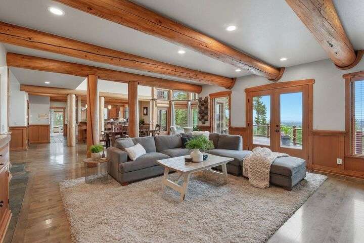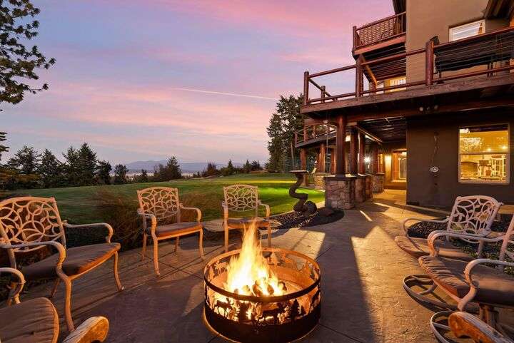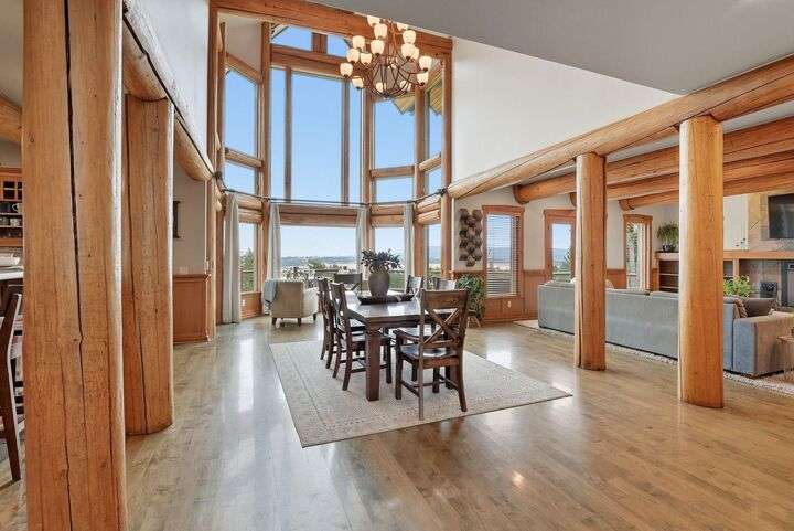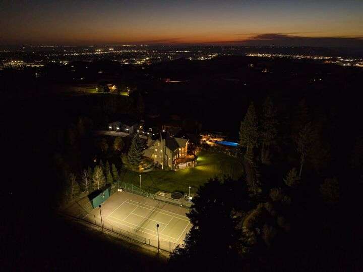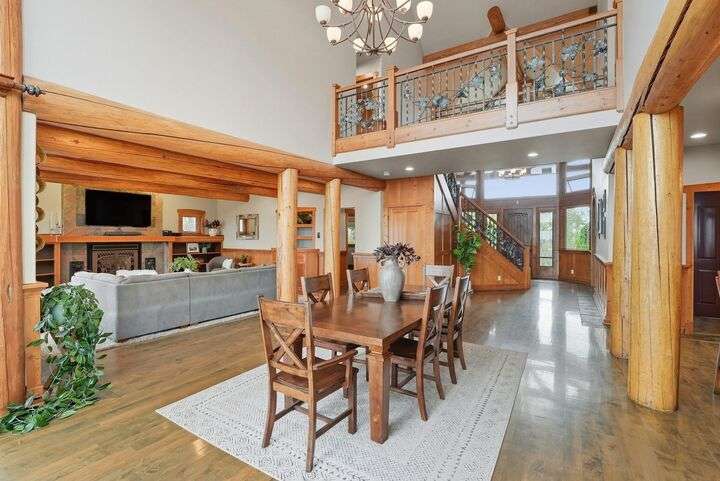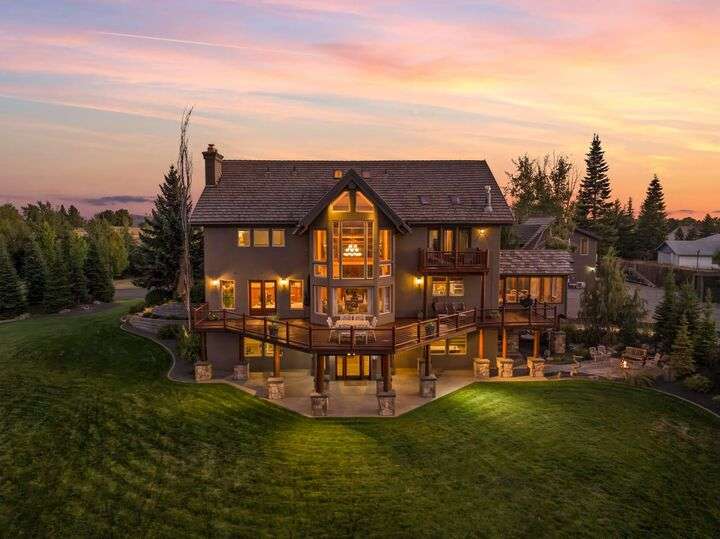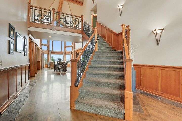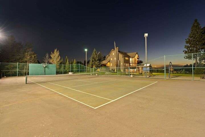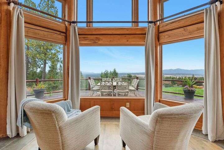 Perched majestically on Mt. Saint Michael, this Yellowstone-inspired luxury estate offers a breathtaking 180-degree view, with architectural and log elements that evoke the spirit of Montana ranches. Featuring grand 35-foot vaulted ceilings and expansive floor-to-ceiling windows, the residence spans 6,685 square feet and includes 5 bedrooms and 5 bathrooms. The master retreat boasts a spacious loft, two walk-in closets, and a fully remodeled ensuite. Complementing the main house are several additional structures: a 28x40 workshop, a 58x40 barn, and a horse setup. Expansive decks provide thousands of square feet for leisurely enjoyment and stunning views, while a fully equipped Accessory Dwelling Unit (ADU) offers 2 bedrooms and a 3-car garage. The estate also features a full-sized fenced regulation tennis court and an exquisite pool, combining luxury with practicality, making it perfect for relaxation and entertaining. Experience rural tranquility with convenient access to Spokane’s vibrant cultural scene.
