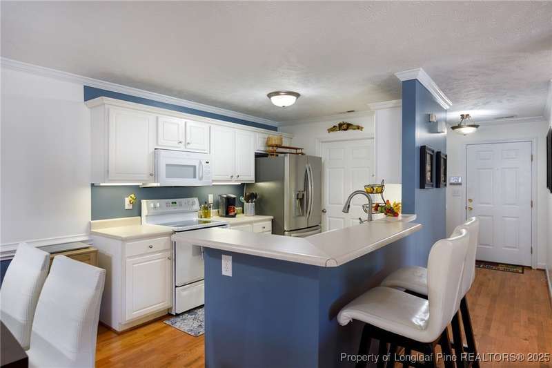 Welcome to your new home in a beautifully maintained, gated community offering peace, privacy and comfort. This move-in ready condo features a spacious open floor plan designed for modern living, with ceiling fans throughout to keep things cool and comfortable all year long. The kitchen is a standout, boasting a brand new microwave, ample cabinet space, a breakfast bar countertop, and plenty of room to cook and entertain. Plus, the dishwasher will be replaced! Adjacent to the kitchen is the living area, highlighted by a pristine electric fireplace that adds warmth and ambiance to the space. Enjoy the calm surroundings of a quiet neighborhood with the added security and exclusivity of a gated entrance.