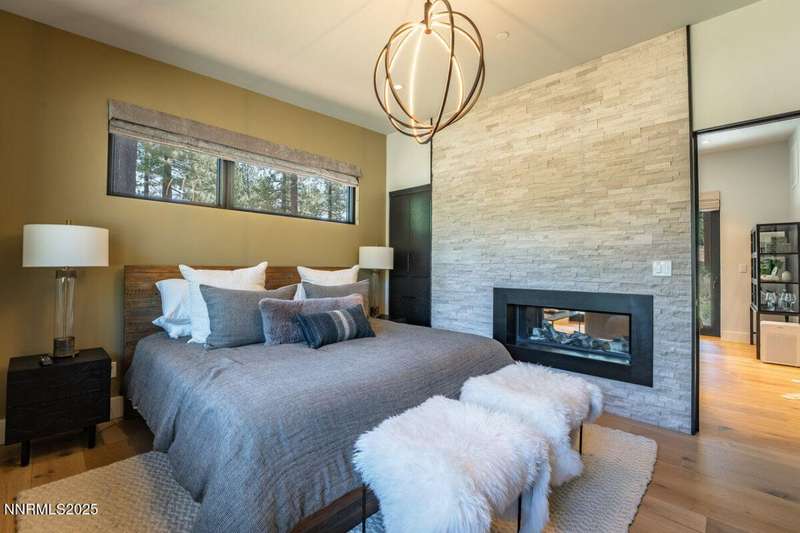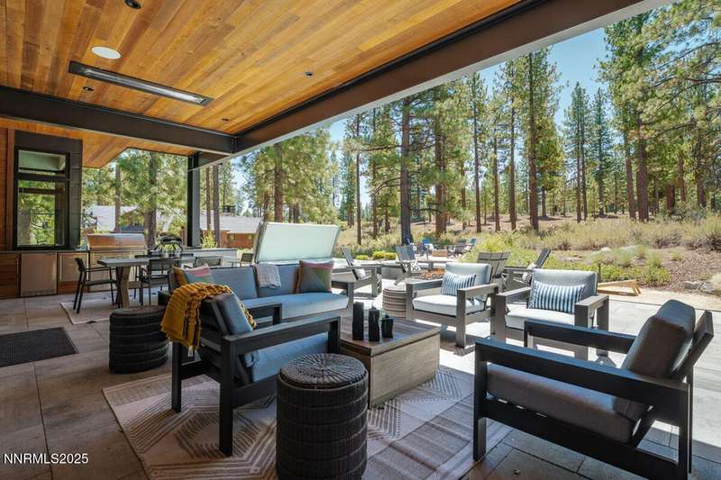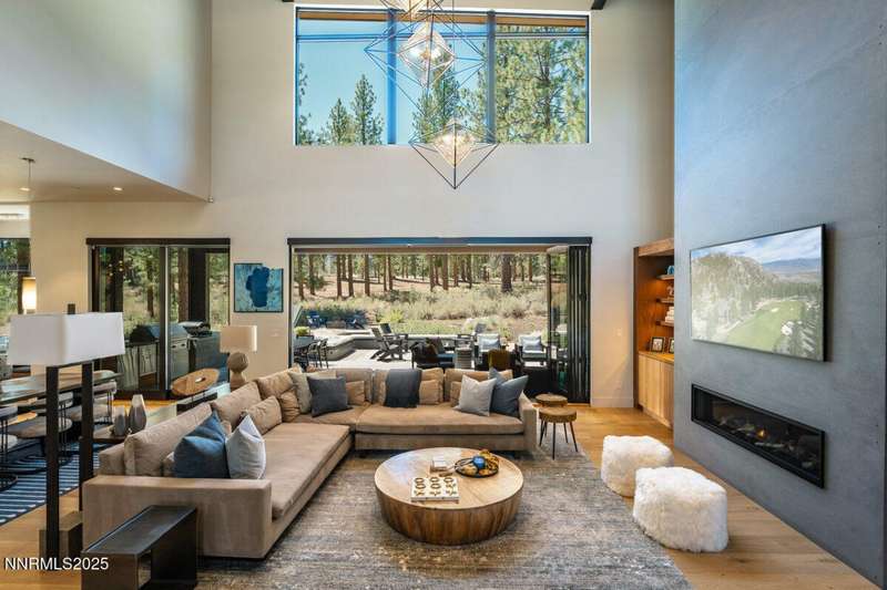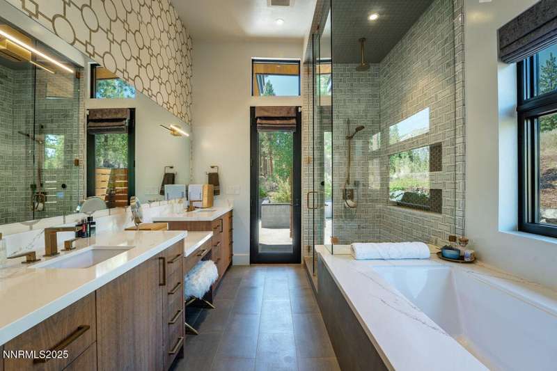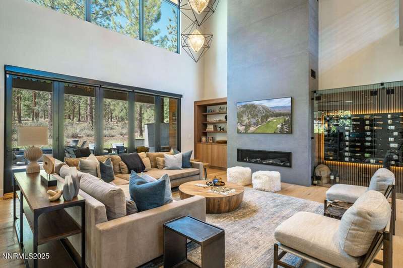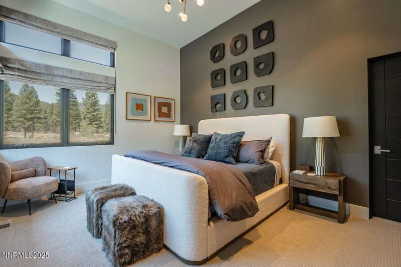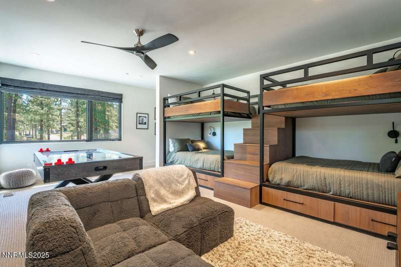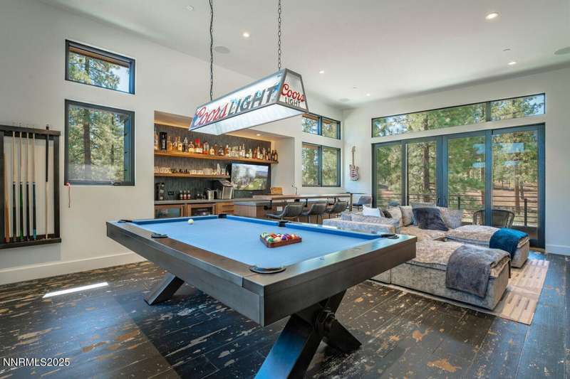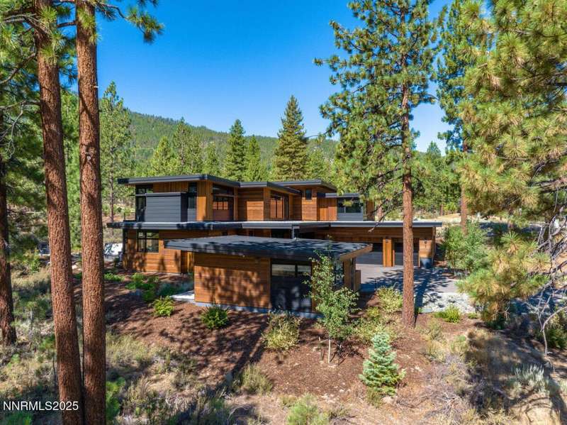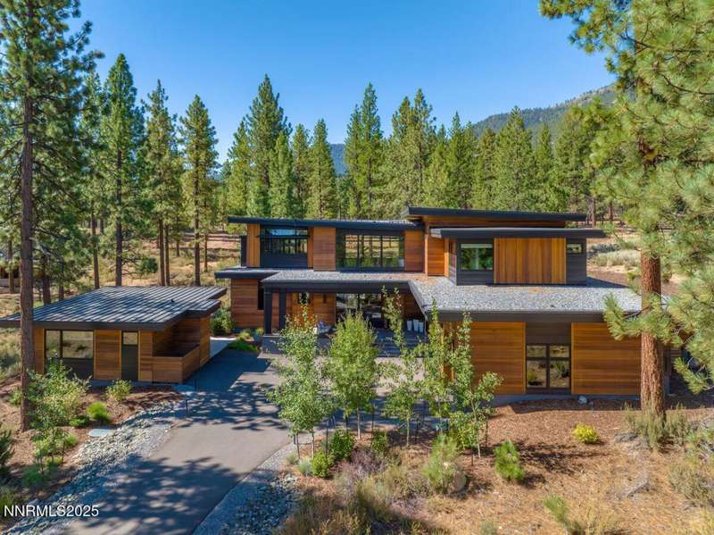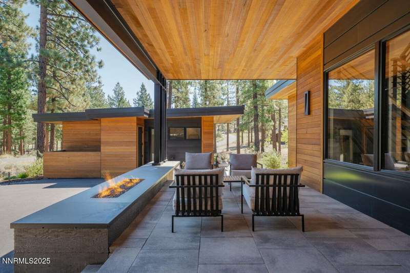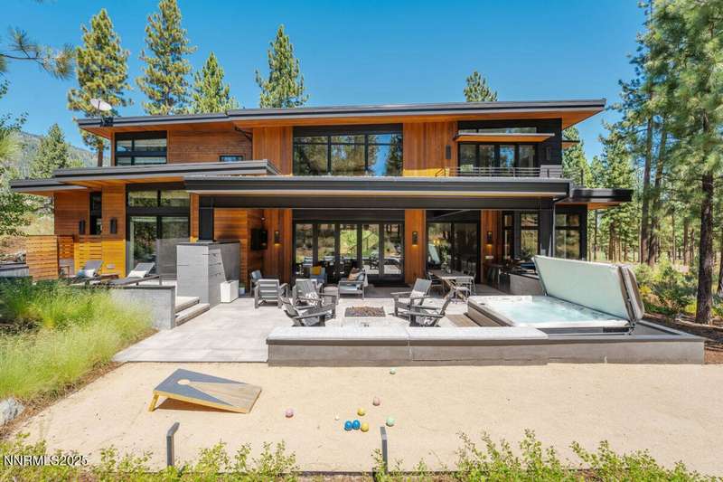 Nestled on 1.15 acres in the exclusive Clear Creek Tahoe community, this mountain modern retreat feels at once expansive and intimate-a home where grand design meets the quiet rhythm of the Sierra.Inside, light pours through towering windows, illuminating warm natural textures and framing views that shift with the seasons. The main house hosts four bedrooms, including a playful bunk room where laughter lingers late into the night, and a primary suite that feels worlds away, yet just steps from the heart of the home. A dedicated office offers a cocoon of focus, while open living spaces invite effortless connection.Climb the stairs, and a surprise awaits-a private upstairs entertainment lounge with a full bar and pool table. Here, evenings stretch long and easy, with the clink of glasses and the soft thud of billiard balls punctuating the mountain quiet.Just beyond, the detached Casita extends a warm welcome, offering a private bedroom, full bath, and its own kitchen-perfect for guests seeking independence without sacrificing closeness.Outdoors, life unfolds in every direction. Three fire pits glow under a starlit sky. A built-in BBQ and outdoor shower stand ready after a day of golf or hiking. The hot tub beckons, steam curling into the alpine air.With its three-car garage, tall ceilings, and architecture that blurs the line between indoors and out, this home is more than a residence-it's an experience. A place where every window is a painting, every gathering feels like a celebration, and every day ends with the mountains as your backdrop.Clear Creek Tahoe is more than a community-it's a lifestyle. Anchored by Nevada's #1-ranked residential golf course, it offers an unparalleled blend of mountain and lake amenities. The private Lake & Ski House provides 180 feet of sandy beach, water sports, and a shuttle service to Heavenly Ski Resort. Summit Camp is a hub for recreation with a pool, water slide, hot tub, tennis, pickleball, and bocce. At the heart of it all, the spacious Clubhouse features a year-round wellness and fitness center, ensuring adventure and relaxation in every season.