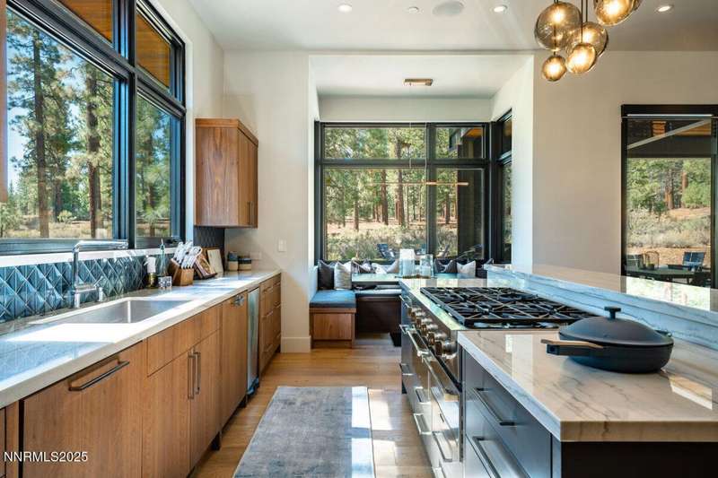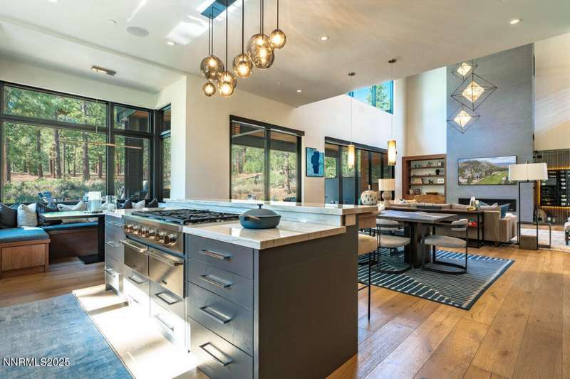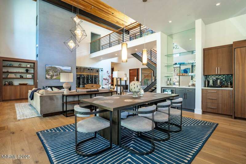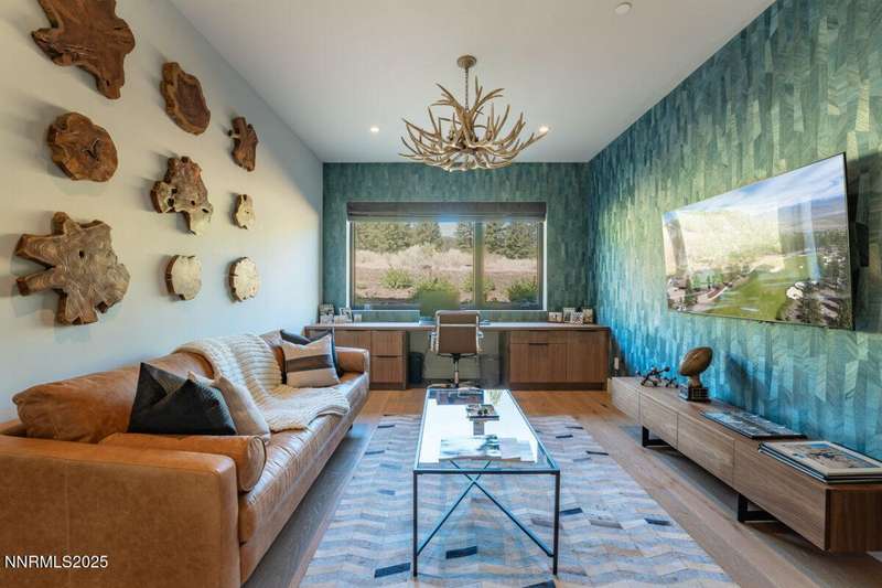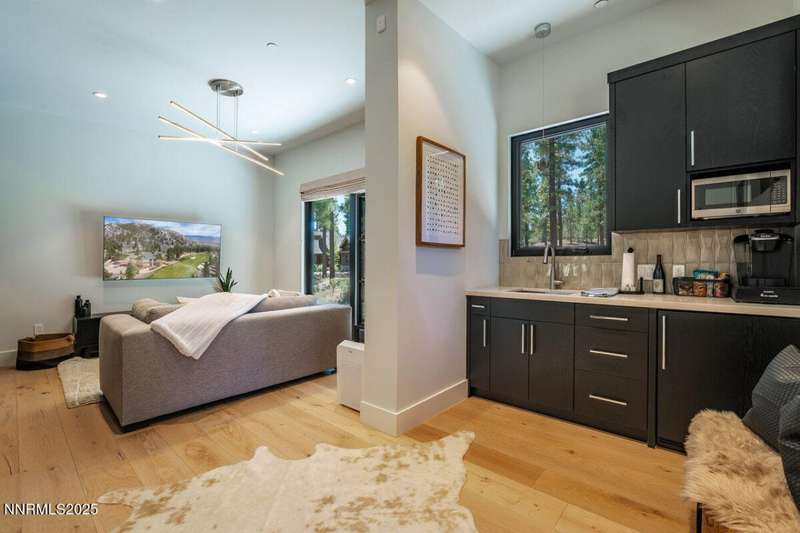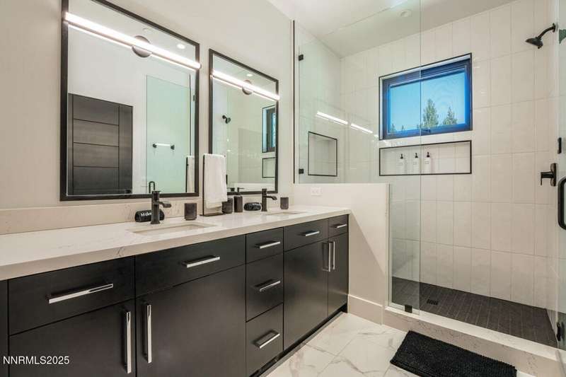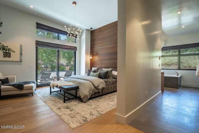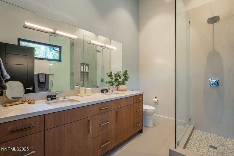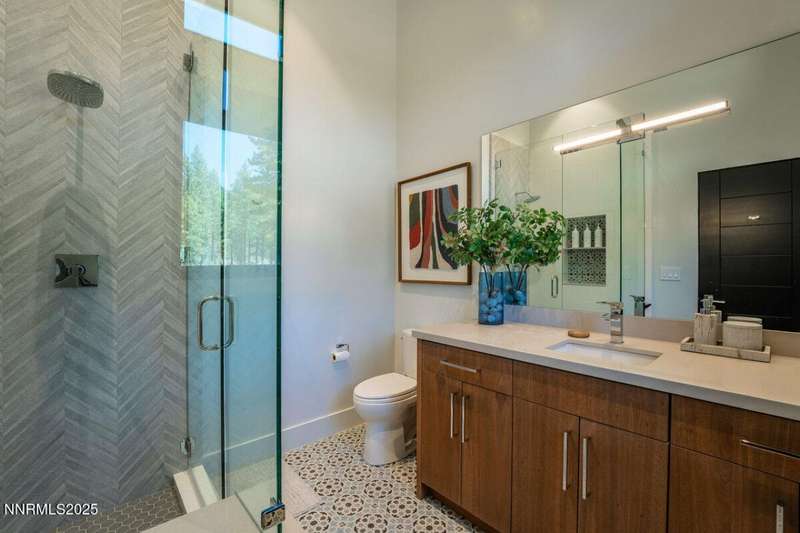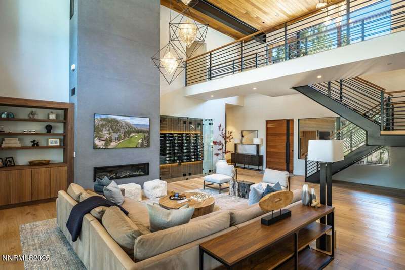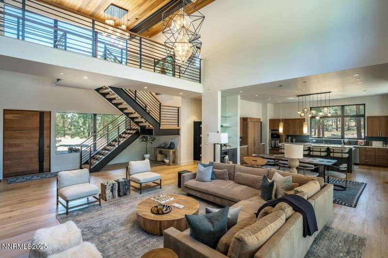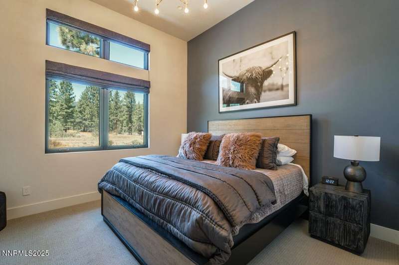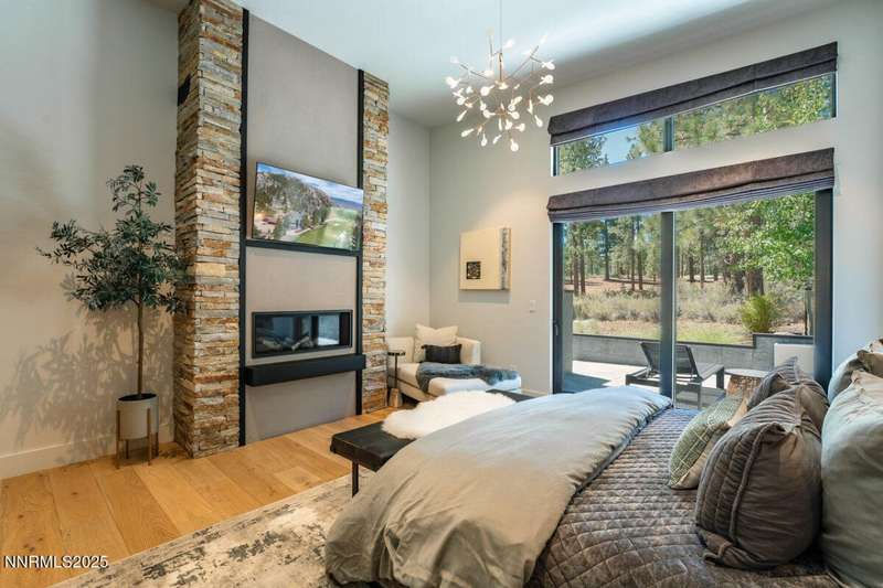 Nestled on 1.15 acres in the exclusive Clear Creek Tahoe community, this mountain modern retreat feels at once expansive and intimate-a home where grand design meets the quiet rhythm of the Sierra.Inside, light pours through towering windows, illuminating warm natural textures and framing views that shift with the seasons. The main house hosts four bedrooms, including a playful bunk room where laughter lingers late into the night, and a primary suite that feels worlds away, yet just steps from the heart of the home. A dedicated office offers a cocoon of focus, while open living spaces invite effortless connection.Climb the stairs, and a surprise awaits-a private upstairs entertainment lounge with a full bar and pool table. Here, evenings stretch long and easy, with the clink of glasses and the soft thud of billiard balls punctuating the mountain quiet.Just beyond, the detached Casita extends a warm welcome, offering a private bedroom, full bath, and its own kitchen-perfect for guests seeking independence without sacrificing closeness.Outdoors, life unfolds in every direction. Three fire pits glow under a starlit sky. A built-in BBQ and outdoor shower stand ready after a day of golf or hiking. The hot tub beckons, steam curling into the alpine air.With its three-car garage, tall ceilings, and architecture that blurs the line between indoors and out, this home is more than a residence-it's an experience. A place where every window is a painting, every gathering feels like a celebration, and every day ends with the mountains as your backdrop.Clear Creek Tahoe is more than a community-it's a lifestyle. Anchored by Nevada's #1-ranked residential golf course, it offers an unparalleled blend of mountain and lake amenities. The private Lake & Ski House provides 180 feet of sandy beach, water sports, and a shuttle service to Heavenly Ski Resort. Summit Camp is a hub for recreation with a pool, water slide, hot tub, tennis, pickleball, and bocce. At the heart of it all, the spacious Clubhouse features a year-round wellness and fitness center, ensuring adventure and relaxation in every season.