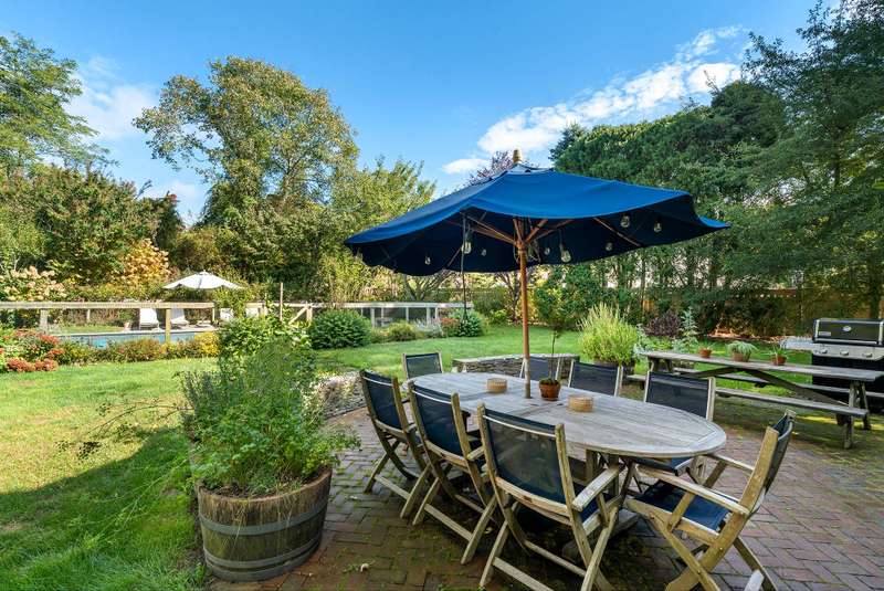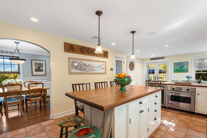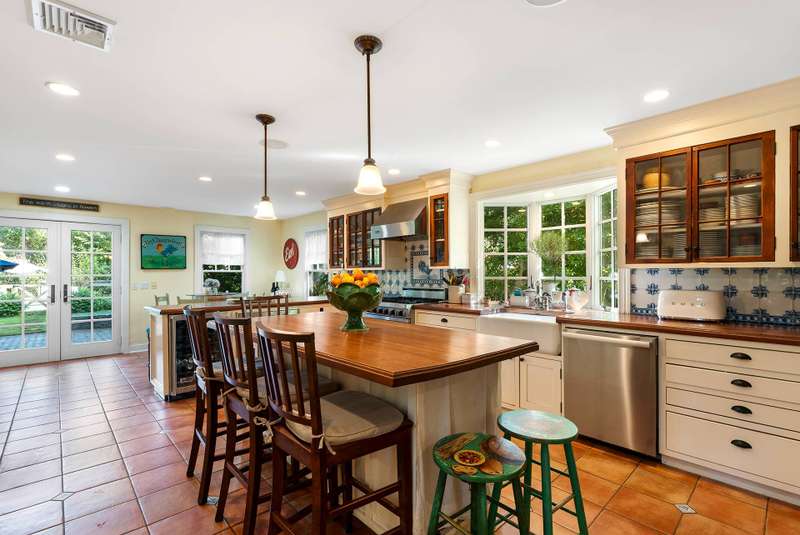 This sunny farmhouse is nestled between three major golf courses and close to the sandy beaches of Peconic Bay. In minutes, you can also be in the center of Southampton village enjoying the shops and restaurants. The gracious layout lends itself to both entertaining and relaxation with a large living room, country dining room and large Mediterranean kitchen with gourmet appliances. A pretty backyard is just made for lazy summer days.