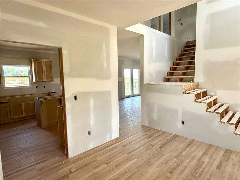 Approximately 45-60 days to completion! Meet The AMBER by Robertson Construction! A lovely 2-Story with 4 bedrooms, 2 1/2 baths, 3 car garage featuring an open layout and plenty of space for relaxation and entertaining. The Main Level offers REAL HARDWOOD FLOORS, Gas Fireplace, a Wall of Windows that fills the space with lots of natural light, Dining Room, Breakfast area, Stainless Appliances, Custom-built Cabinets, Island, and much attention to detail! Upstairs you will find the Master Suite, Walk-in Closet and Master Bath with a separate and tub shower along with 3 more Bedrooms, Full Bath and a LAUNDRY ROOM. COVERED DECK. Located in the highly-rated Kearney School District!