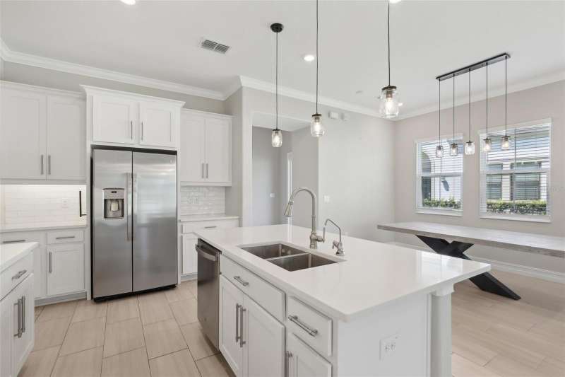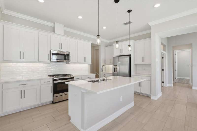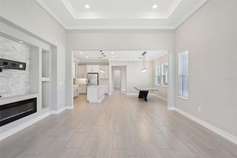 Under contract-accepting backup offers. A Beautiful Villa with open concept floor plan at ESTANCIA ( SANTERI Sub-division) one of the most desirable communities in Wesley Chapel with excellent schools and close to the Hospitals, Wiregrass Mall, Restaurants and only 10 min from I-75. This 2/2 house was built with many upgrades like crown molding, tile floors in the common areas + office/study and 2 full baths and laminated floors in the bedrooms, the living room has an accent wall with a built in fireplace, large center island with breakfast bar seating overlooking the living space, natural gas range, stainless steel appliances, and large walk in pantry, the master bath with double sink vanities, walk-in frameless shower, linen closet, private toilet, and huge walk in closet . Spacious covered back porch to relax on! Residents also have access to the Estancia’s main amenity center providing a community pool with fun slide, lap pool, fitness center, club house, tennis and basketball courts, playground, dog park, and miles of walking trails.