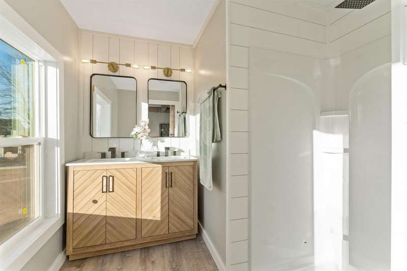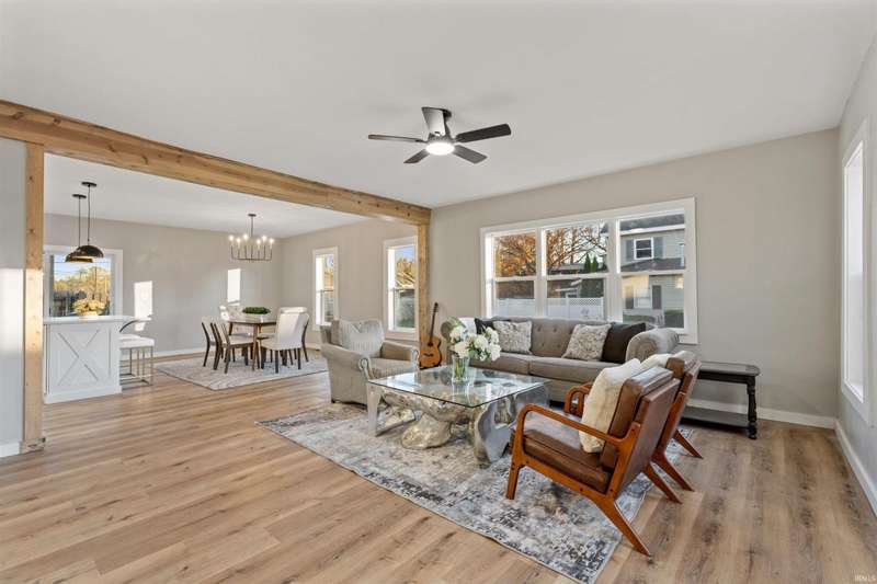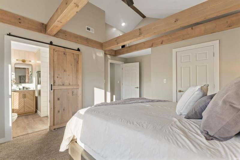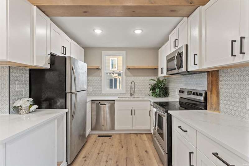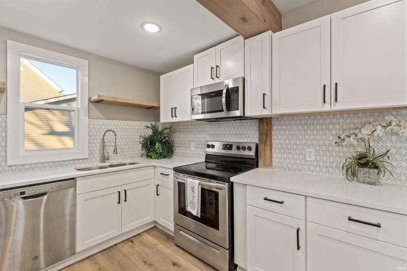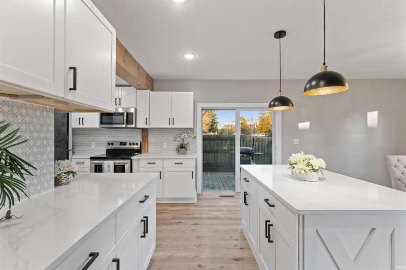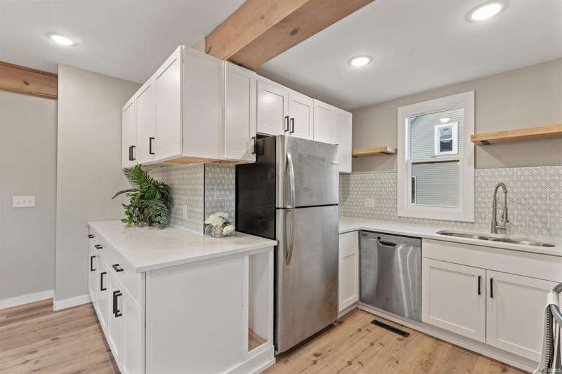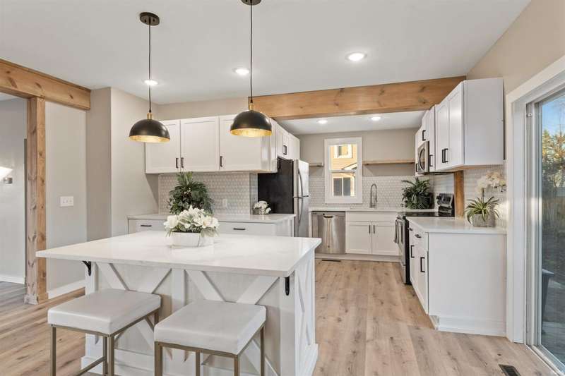 This stunning, completely remodeled 3-bedroom, 2-bathroom home is the epitome of modern living. The kitchen boasts a sleek design with a large island, white quartz countertops, and stainless steel appliances?perfect for entertaining or everyday cooking. Modern wood beams add a touch of elegance throughout the home, complementing the fresh, contemporary aesthetic. The spacious main bedroom features high ceilings, creating an airy and luxurious retreat. Both full bathrooms have been completely renovated and include walk-in showers with modern fixtures, offering a spa-like experience. Step outside through the sliding doors to a brand-new deck, perfect for relaxing or hosting gatherings. With brand-new windows, siding, and a roof, this home offers peace of mind and low maintenance for years to come. Everything about this property exudes quality and style?move in and enjoy!