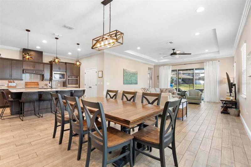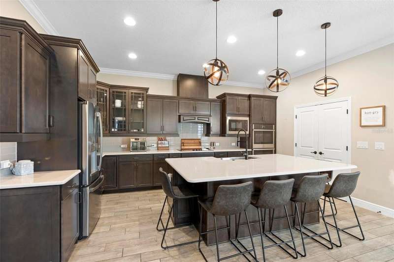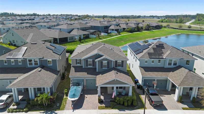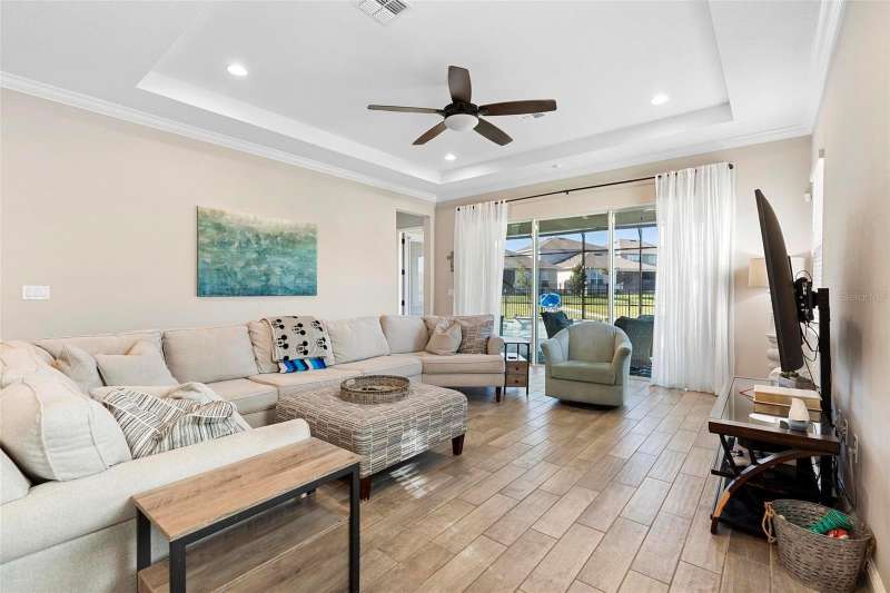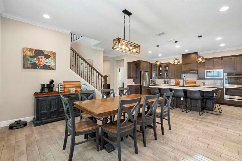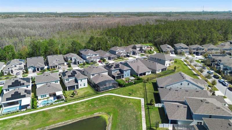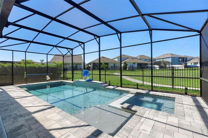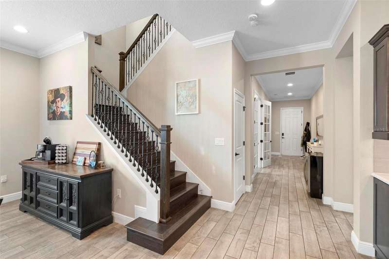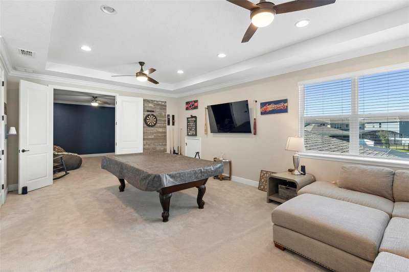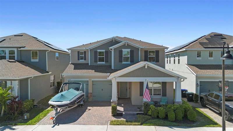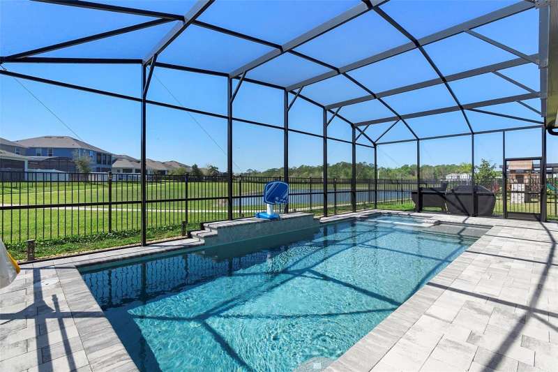 Live the Florida Dream! Welcome to the (en)suite life — luxury, comfort, and sunsets await! Built in 2020, this stunning 2-story POOL home sits in a sought-after Horizon West community with LOW HOA FEES — modern living and great value combined. Inside, enjoy elegant crown molding throughout and the spacious Grayson floorplan with a rare 3-CAR TANDEM GARAGE . The gourmet kitchen features a huge island and stone countertops — perfect for gatherings and everyday living. The first-floor Owner’s Suite offers peaceful pool and pond views, a tray ceiling, and a spa-like bath. A second ensuite bedroom downstairs is ideal for guests or multi-gen living, plus a private office for work or study. Upstairs, you’ll find three more bedrooms ( two ensuites ) with walk-in closets, a large loft for games or play, and a theater/media room for movie nights. Step out to your screened-in pool overlooking tranquil pond views — the perfect sunset backdrop for relaxing or entertaining. This move-in ready oasis has room for everyone and is priced to sell fast — schedule your private tour today! Home is where your story begins — let me help you start your story!