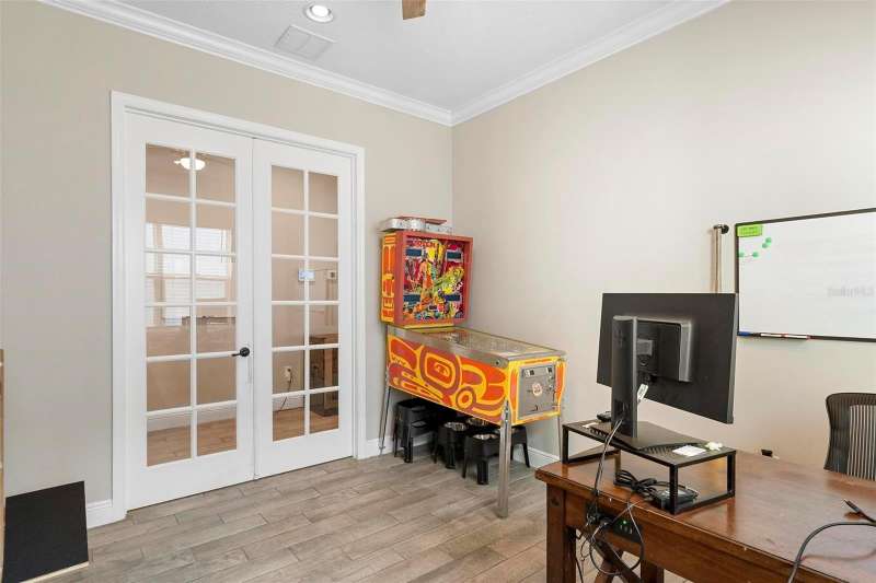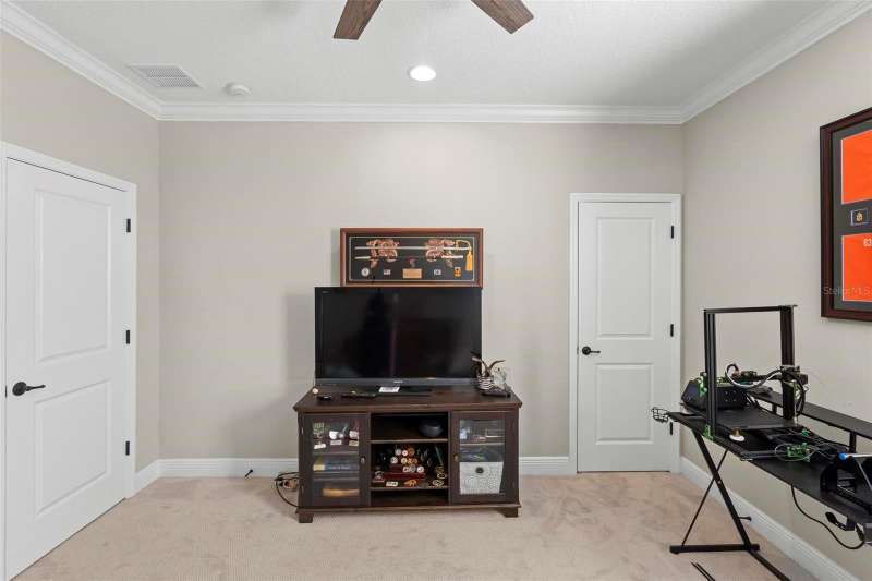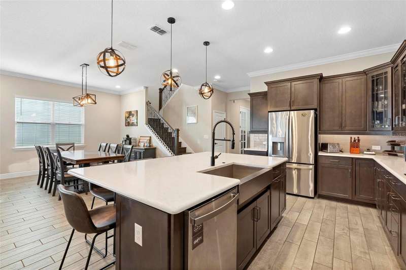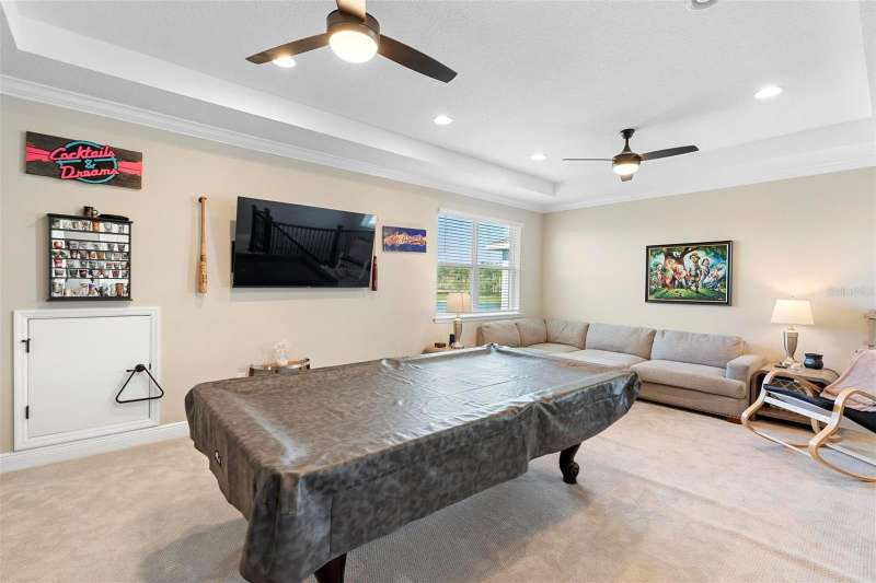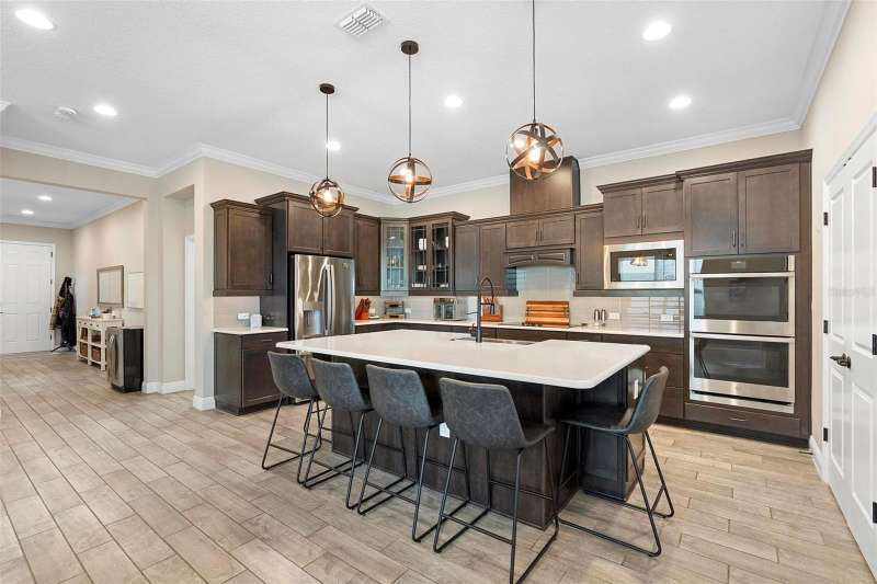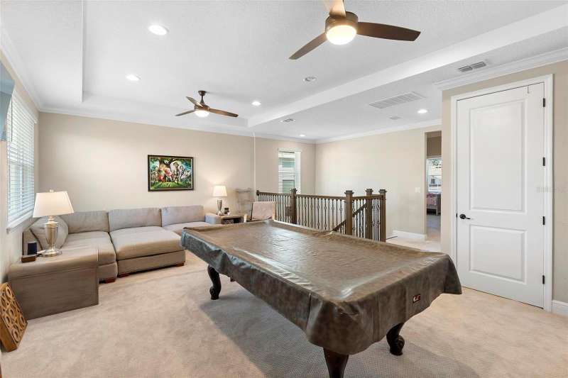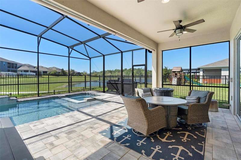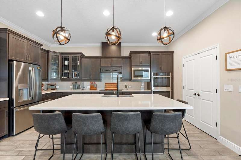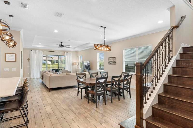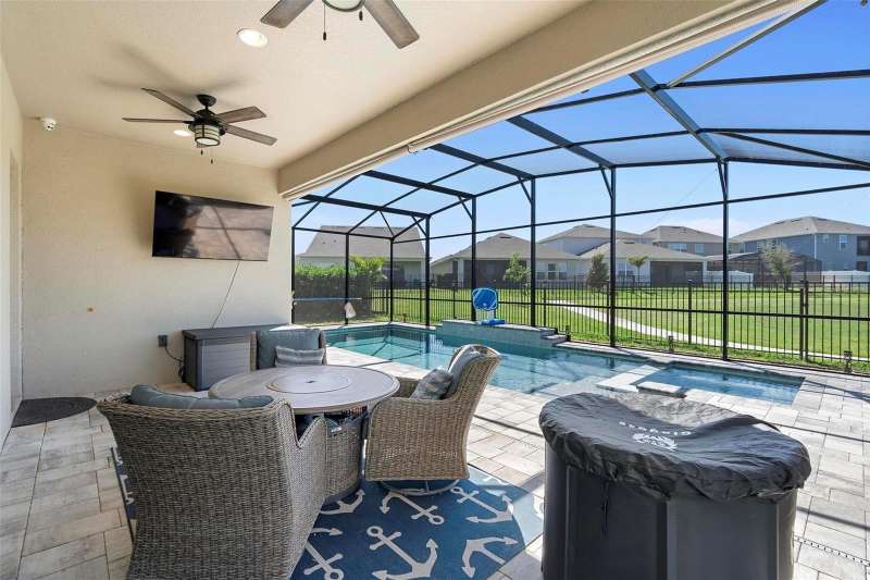 Live the Florida Dream! Welcome to the (en)suite life — luxury, comfort, and sunsets await! Built in 2020, this stunning 2-story POOL home sits in a sought-after Horizon West community with LOW HOA FEES — modern living and great value combined. Inside, enjoy elegant crown molding throughout and the spacious Grayson floorplan with a rare 3-CAR TANDEM GARAGE . The gourmet kitchen features a huge island and stone countertops — perfect for gatherings and everyday living. The first-floor Owner’s Suite offers peaceful pool and pond views, a tray ceiling, and a spa-like bath. A second ensuite bedroom downstairs is ideal for guests or multi-gen living, plus a private office for work or study. Upstairs, you’ll find three more bedrooms ( two ensuites ) with walk-in closets, a large loft for games or play, and a theater/media room for movie nights. Step out to your screened-in pool overlooking tranquil pond views — the perfect sunset backdrop for relaxing or entertaining. This move-in ready oasis has room for everyone and is priced to sell fast — schedule your private tour today! Home is where your story begins — let me help you start your story!