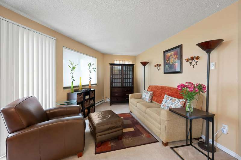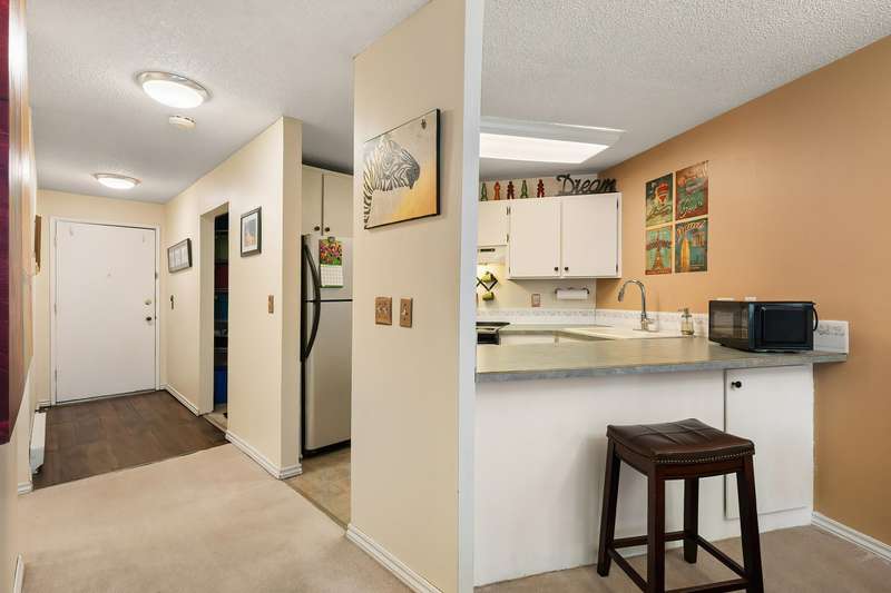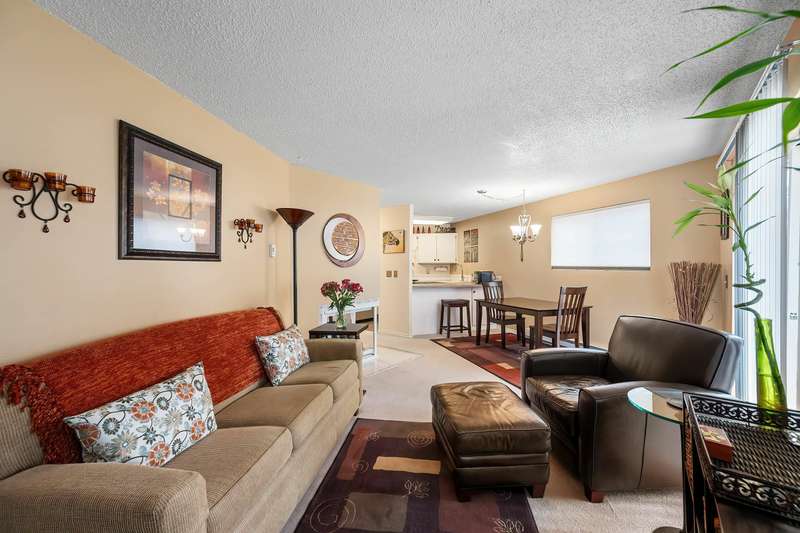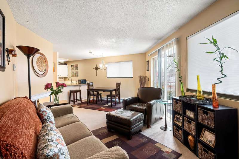 Ready to move in and enjoy. Perfect size and convenient location in the Valley. 2 bedrooms, 1-3/4, remodeled bath(walk in shower; no tub). Ground Floor Condominium with slider to walk out patio area. MAIN is NOT a main street, it borders Balfour Park! Kitchen appliances are all newer; stainless range and dishwasher. Old windows replaced with white vinyl. Screens on all windows. Blinds on all windows. Slider out to patio and parking lot/carport. Secure main entryway to main hallways, mail boxes and elevator. Central courtyard with fountain. In-unit laundry and community laundry. Separate storage unit on 3rd floor(yes-there is a newly serviced and replaced elevator) In ground pool and Rec Center. Tight community with only 24 units. Everyone is essentially on a corner! Possibly Handicap Accessible!!!!!!!!!!!!!