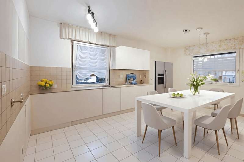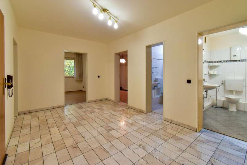 This spacious 4-room apartment with approx. 109 m² of living space offers you a well-thought-out room concept, two full bathrooms, a balcony and an optional parking space - ideal for families or couples who value comfort, proximity to the city center and quiet living in a small community. It is located on the 2nd floor of a well-kept apartment building from 1983 with only four residential units - a manageable community of owners that ensures a quiet and pleasant living atmosphere. Even the entrance area welcomes you with generosity and offers enough space for a wardrobe or additional furniture. The apartment is well laid out throughout and impresses with its clear structure and brightness. The separate kitchen is a real highlight: it offers enough space for an individually planned fitted kitchen and also a large dining table - ideal for combining cooking and eating in style without having to forego a separate living area. Four rooms offer a variety of uses - as a bedroom, study or guest room. The living room opens onto the balcony, which offers a peaceful outdoor space - perfect for relaxing in the fresh air. Large windows allow plenty of light into the rooms throughout the day and create an open, friendly living atmosphere. Two interior bathrooms offer additional comfort in everyday life - especially in households with several people. One is equipped with a shower and bathtub, the second with an additional shower - a rarity in this size category. The apartment is heated by electric underfloor heating, which provides even, pleasant warmth in all living areas and the bathrooms. The hot water is supplied by instantaneous water heaters. The monthly rent is € 330, heating costs are not included. A stair lift in the hallway and the overall barrier-free design of the apartment offer additional comfort and make it easier to use, even in old age or with limited mobility. The permanently allocated optional parking space directly at the building rounds off the offer. The location in the popular Dellviertel district impresses with its proximity to the city center and is also a quiet residential area. Shopping facilities, restaurants, kindergartens and schools are all within walking distance. The connection to public transportation and the freeways to Düsseldorf and the Ruhr area is also ideal. This condominium combines space, comfort and location - ideal for anyone who wants to live close to the city center without sacrificing living quality. Feel free to arrange a viewing appointment - we look forward to hearing from you.