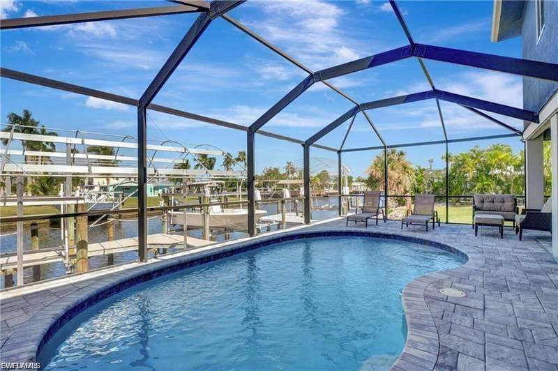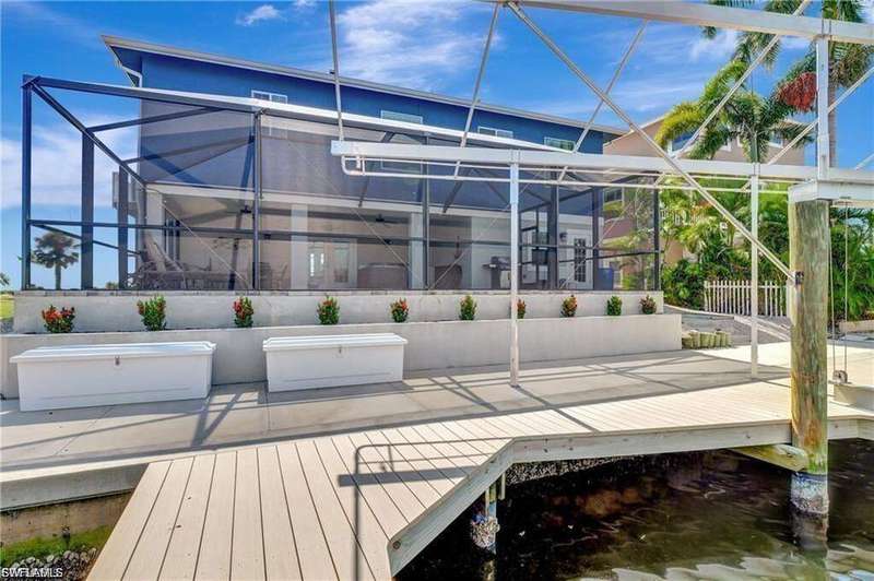 Your Slice of Paradise Awaits! Step into this fully furnished, turnkey waterfront masterpiece and prepare to be swept away by breathtaking panoramic views of Pine Island Sound and Sanibel Island. Nestled in one of Southwest Florida's most coveted locations, this gulf-access pool home is a rare gem that blends luxury, comfort, and island charm. Interior Elegance Meets Coastal Chic Every inch of this home is thoughtfully designed with beachy, nautical decor that instantly transports you to vacation mode. The gourmet kitchen is a chef's dream, featuring Cambria Quartz countertops, GE High-Profile stainless steel appliances, and a layout perfect for entertaining. Peace of Mind & Premium Upgrades Enjoy the security and style of a metal roof, impact-resistant windows and doors, plank tile flooring, and plantation shutters throughout. A new AC keeps things cool, while the shiplap lanai ceiling adds a touch of coastal sophistication. Outdoor Living at Its Finest Sip cocktails from your screened balcony as dolphins and manatees glide by. Take a dip in the heated saltwater pool, then unwind with the best sunsets in SWFL. With two covered boat lifts (14k & 7k lbs.), composite docks, and a fish cleaning station, your waterfront lifestyle is ready to launch. Island Adventures & Ultimate Convenience Hop in your included golf cart (valued at $20K and loaded with extras) and explore nearby amenities, or cruise to local islands and beaches for world-class fishing and relaxation. This is more than a home-it's a gateway to the island life you've always dreamed of. Fall in Love. Move to Paradise. Whether you're seeking a serene retreat or a vibrant coastal lifestyle, this home delivers it all. Don't just buy a house-claim your piece of paradise.