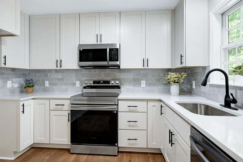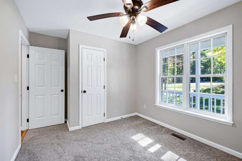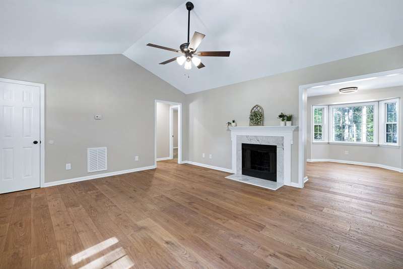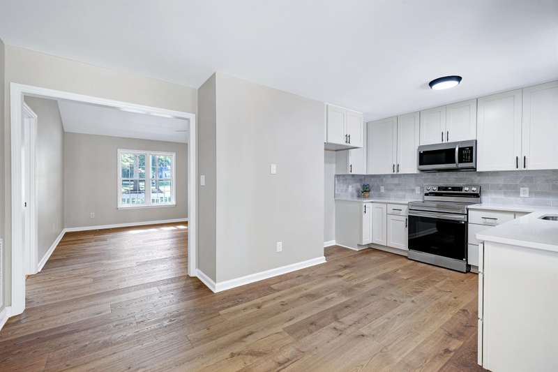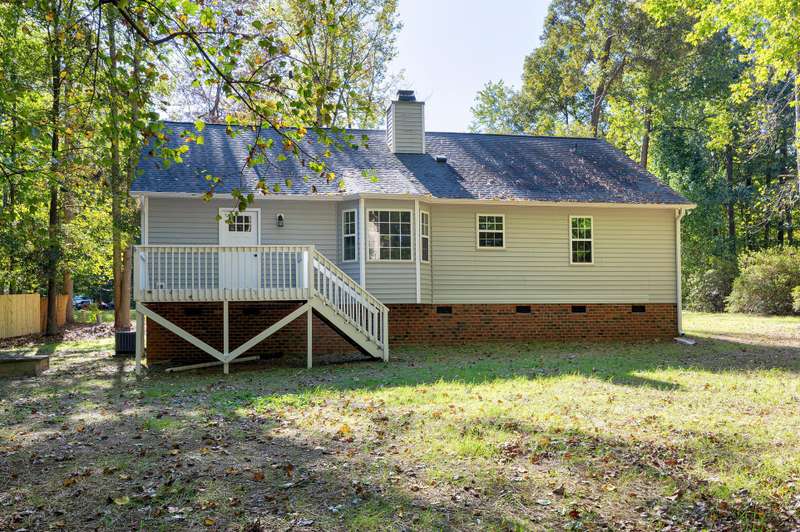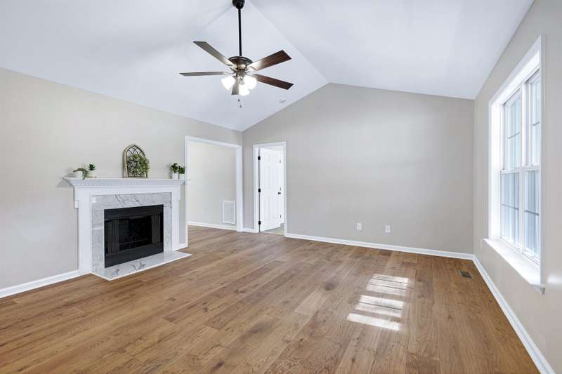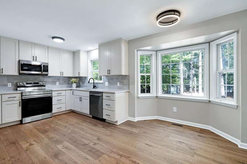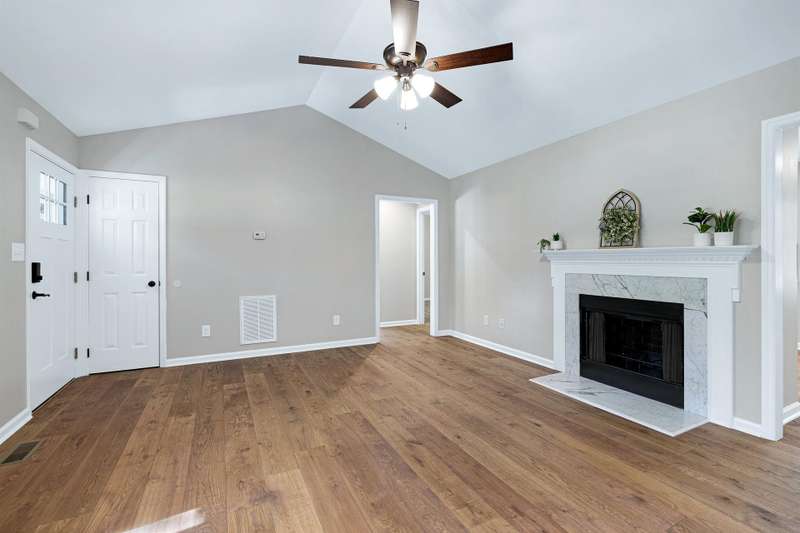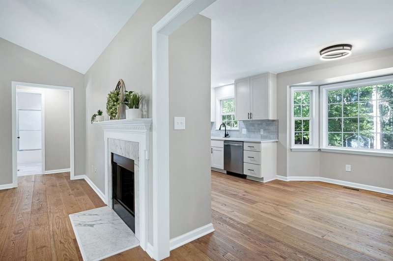 Ask about interest rate buy down for this Charming Remodeled Ranch on 1.3 Acres - Move-In Ready! Welcome home to this beautifully remodeled one-level gem nestled on a spacious 1.3-acre lot in a quiet, sought-after neighborhood. From the moment you arrive, you'll be greeted by a long private driveway leading to a welcoming rocking chair front porch - perfect for morning coffee or evening relaxation. Step inside to discover a fresh, modern interior featuring brand-new hardwood floors, plush new carpet in the bedrooms, and stylish new lighting throughout. Fully updated kitchen boasting quartz countertops, stainless steel appliances, and all-new cabinetry. Both bathrooms have been completely remodeled with high-end finishes. The cozy living room features a beautiful fireplace, creating a warm and inviting atmosphere. Enjoy outdoor living with a spacious deck overlooking a private, wooded backyard - ideal for entertaining, gardening, or simply unwinding in nature. Located in an excellent area with easy access to shopping, dining, and top-rated schools, this home truly offers the best of peaceful living with modern convenience. Don't miss this rare opportunity - schedule your showing today!