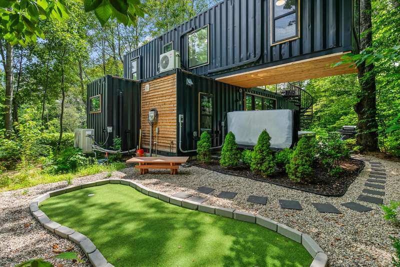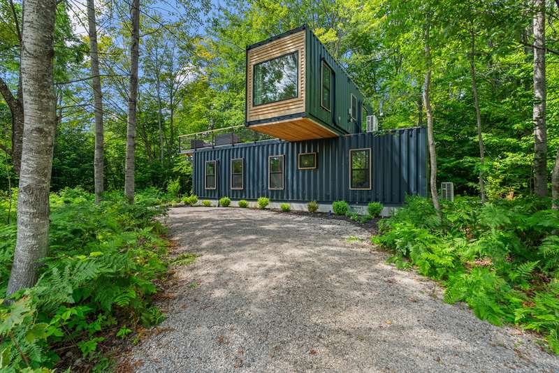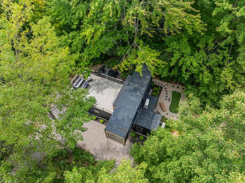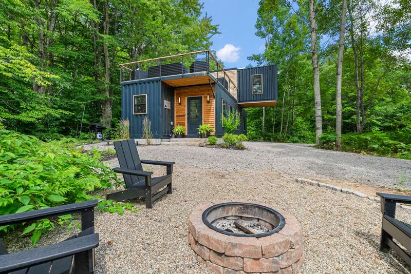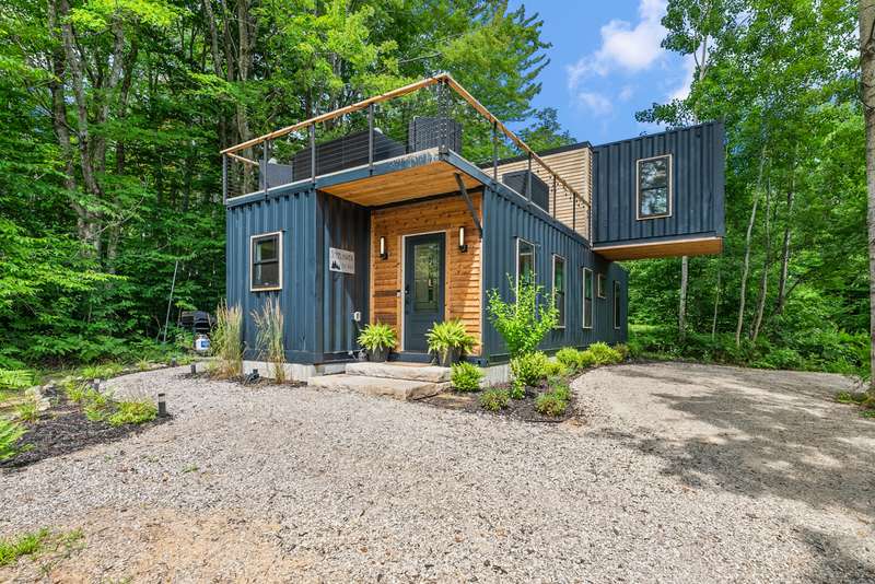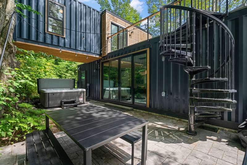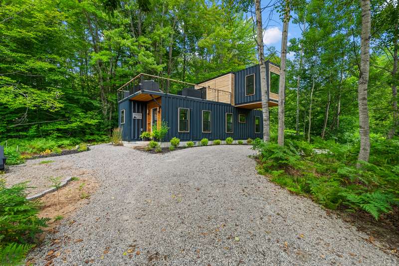 Experience the beauty of Northern Michigan in this modern shipping container home, built in 2022 and located in the ''Lakes of the North'' development. Nestled among the trees, this home is made from three 40-foot containers with cedar accents and features a ground-level patio with an outdoor dining area, wood fire-pit, gas grill, and a six-person hot tub. A spiral staircase leads to a spacious rooftop deck perfect for relaxation with outdoor furniture and a propane fire table. Inside, the open-concept design offers a contemporary and inviting living space with 3 bedrooms and 2 full bathrooms. Boyne Mountain, Schuss Mountain, and Gaylord, MI, all just 25 minutes away. Perfect for a personal getaway or keep it as a successful short-term rental investment. Finances are available by request
