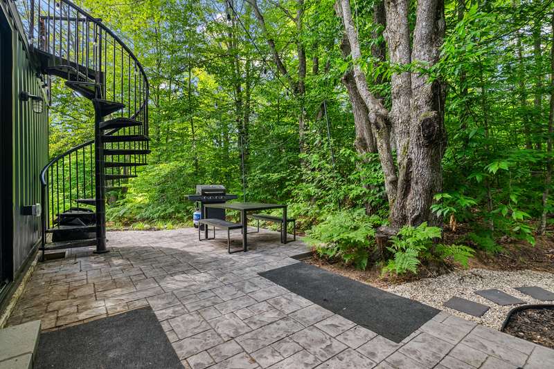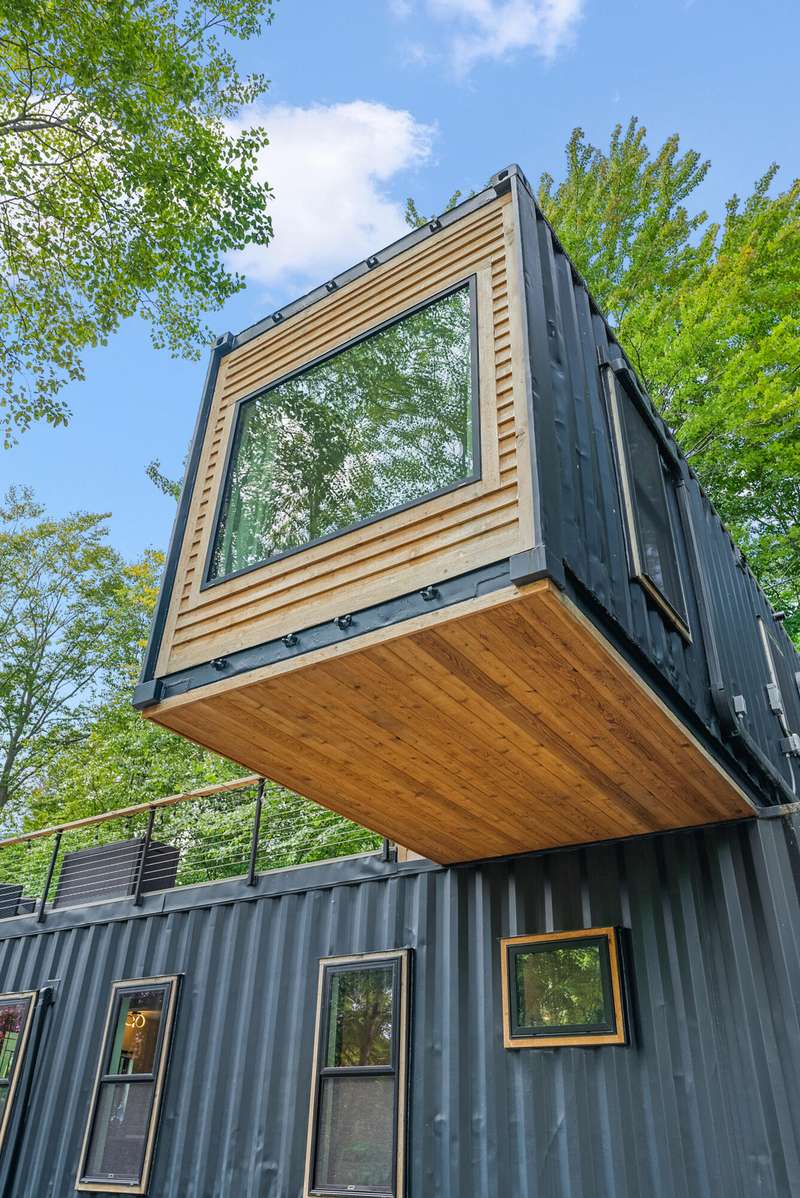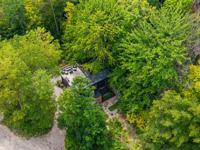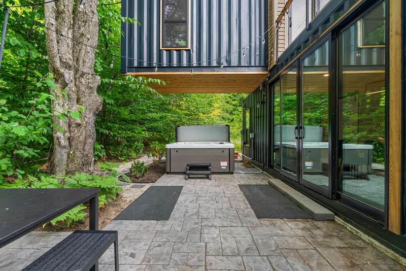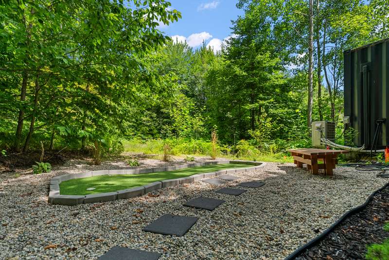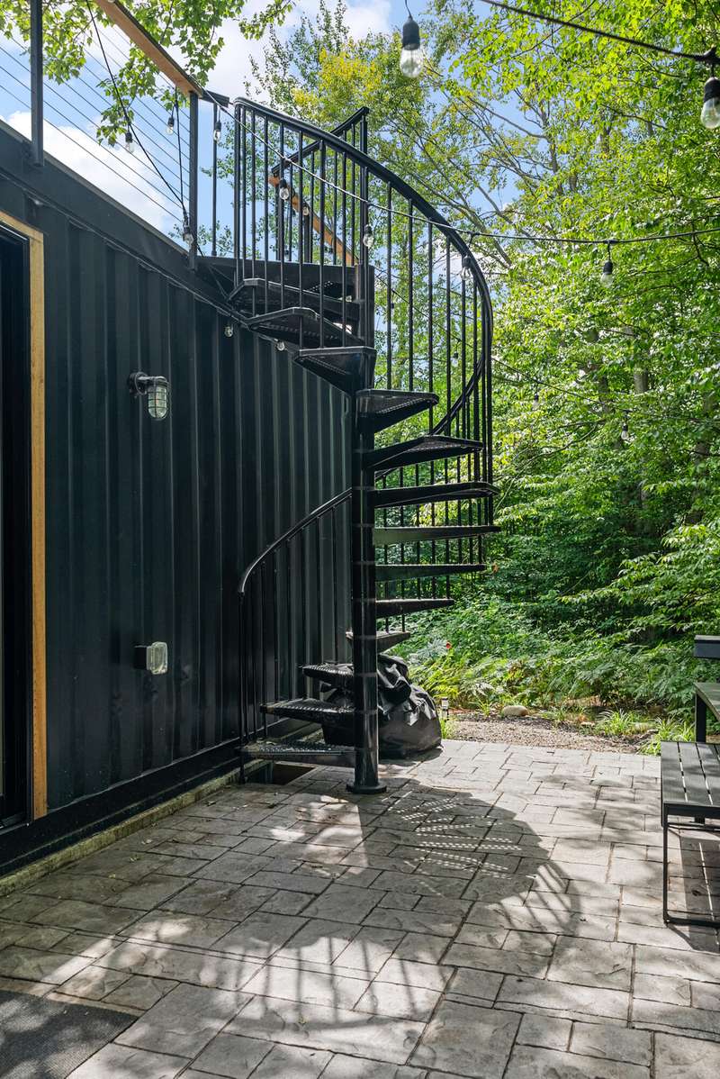 Experience the beauty of Northern Michigan in this modern shipping container home, built in 2022 and located in the ''Lakes of the North'' development. Nestled among the trees, this home is made from three 40-foot containers with cedar accents and features a ground-level patio with an outdoor dining area, wood fire-pit, gas grill, and a six-person hot tub. A spiral staircase leads to a spacious rooftop deck perfect for relaxation with outdoor furniture and a propane fire table. Inside, the open-concept design offers a contemporary and inviting living space with 3 bedrooms and 2 full bathrooms. Boyne Mountain, Schuss Mountain, and Gaylord, MI, all just 25 minutes away. Perfect for a personal getaway or keep it as a successful short-term rental investment. Finances are available by request