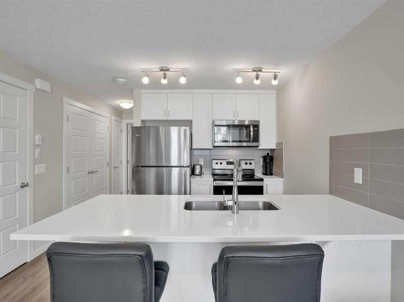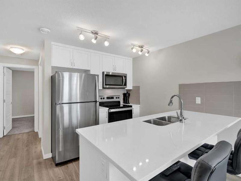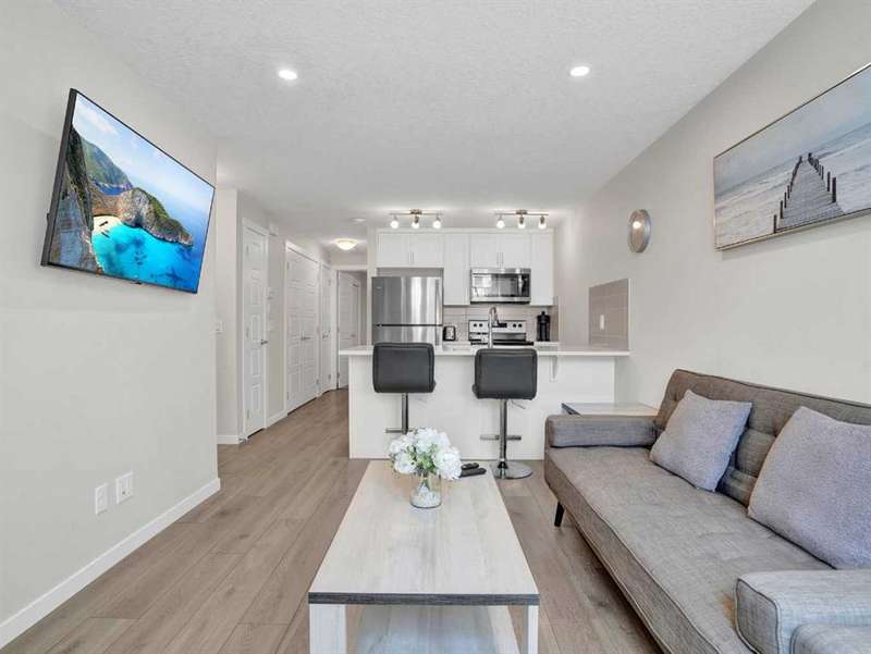 Looking for a well-appointed bungalow-style townhome in South Calgary? This recently built unit in the peaceful community of Seton is just minutes from South Health Campus, Calgary Public Library, Spruce Meadows, South Centre Mall, and a variety of restaurants. Flooded with natural sunlight, this beautifully designed home features tasteful laminate flooring and a neutral color palette throughout. The open-concept floor plan offers a spacious living area, a large bedroom with generous double closets, and a modern kitchen equipped with stainless steel appliances, quartz countertops, an undermount sink, and a pantry. Additional conveniences include in-suite laundry, a dedicated ventilation system, a private hot water tank, a thermostat, and an exclusive parking stall. Enjoy your south-facing Court-yard, perfect for relaxing in the sun and taking in the peaceful surroundings. Plus, this Airbnb-friendly building is just steps from the VIP Cinema, YMCA, and a nearby dog park. Don’t miss this incredible opportunity—schedule your private showing today! Be sure to check out the virtual tour! This unit is below grade.