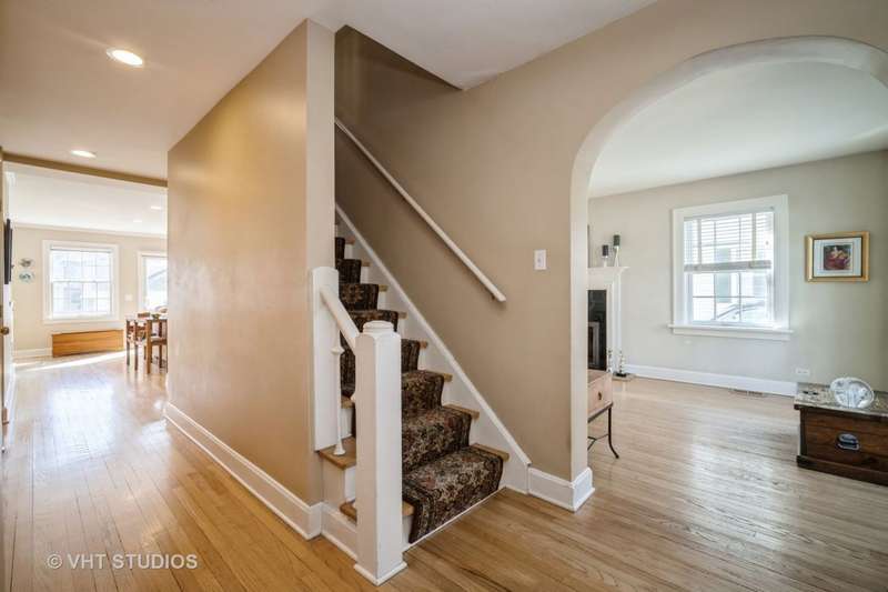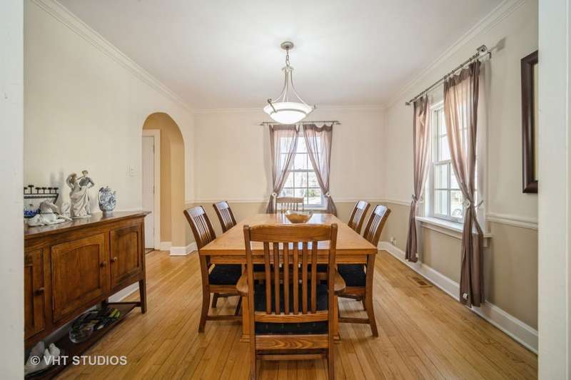 Now is the time to come see this beautiful home that combines timeless elegance with modern comfort. Act quickly and you can be in your new home for many of the Holidays! It is truly an affordable home for those who want this amazing close to town location. Featuring overhead sewers, two furnaces, dual AC units and a brand new roof in 2020, which ensures year-round comfort. Hardwood floors flow throughout the entire house, adding warmth and sophistication, while many windows are thermopane for added energy efficiency and noise reduction. An addition in 1995 enhances the living space, while the cozy family room offers a wood-burning fireplace with a gas starter, perfect for creating a welcoming ambiance. The eat-in kitchen is equipped with premium stainless steel appliances from Jenn-Air and Dacor, solid surface countertops, and recessed lighting, providing both style and functionality. The spacious master bedroom includes a walk-in closet, and the master bath is a luxurious retreat with a separate shower, jetted tub, and a skylight that brings in natural light. The second bedroom offers two closets and a charming Juliet balcony, perfect for a peaceful retreat. The third bedroom features a cushioned seat by the window, ideal for enjoying the view. The home also includes a Bessler attic staircase for easy access to extra storage. A finished partial basement provides additional living space, while the concreted crawl space under the addition offers even more storage potential. Outside, the deck is an ideal spot for outdoor entertaining and relaxation. Situated in a prime location, this home is just moments away from downtown, the train station, schools, shopping, restaurants, parks, and playgrounds, offering both convenience and comfort in a sought-after neighborhood.